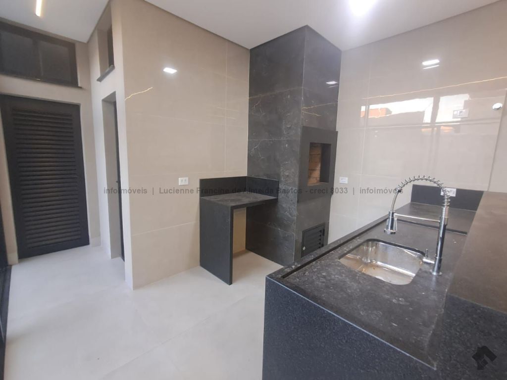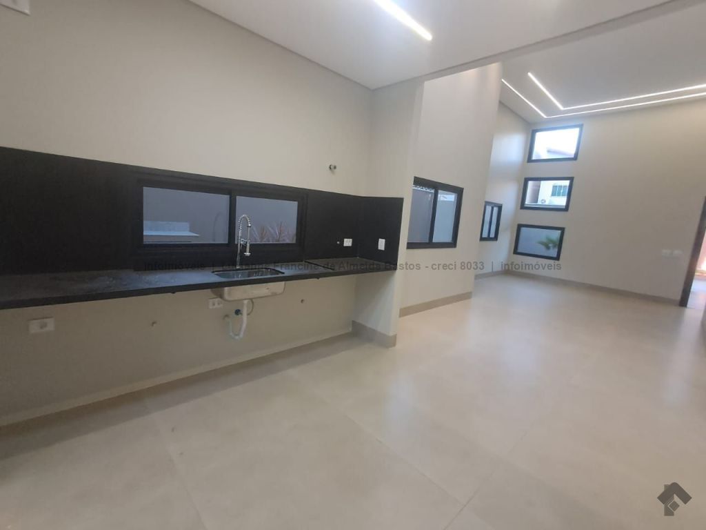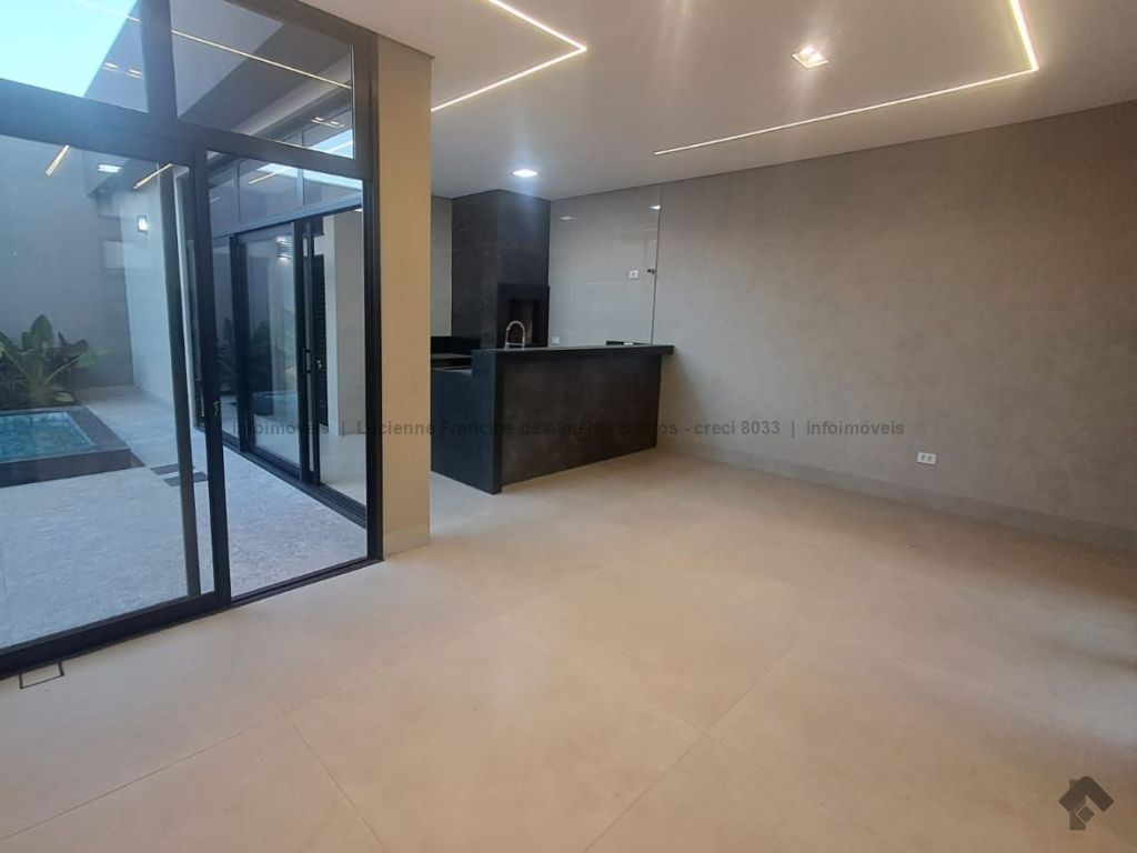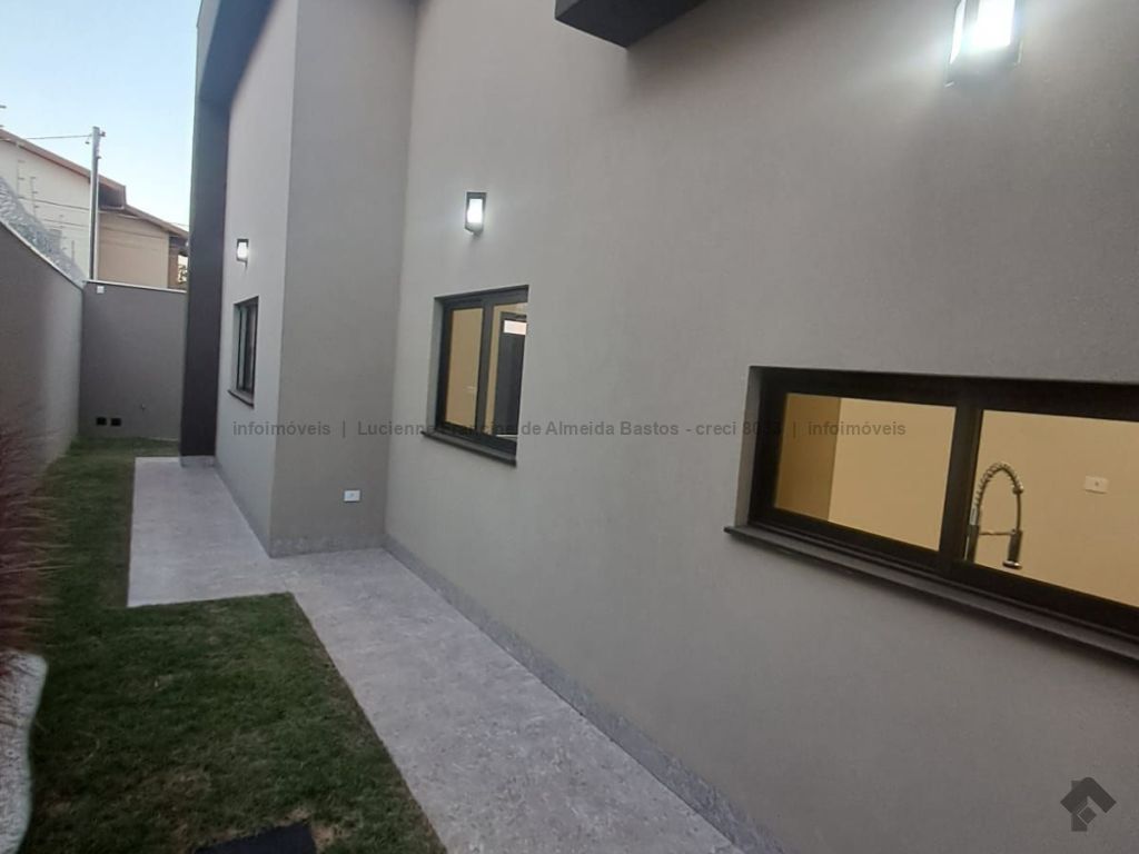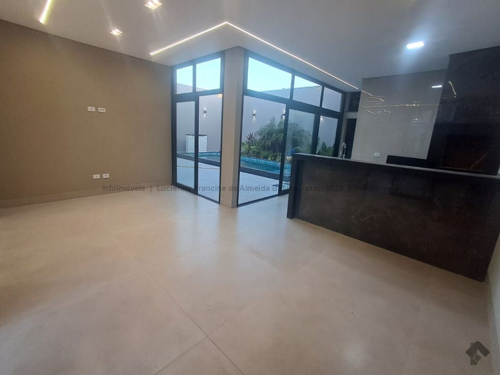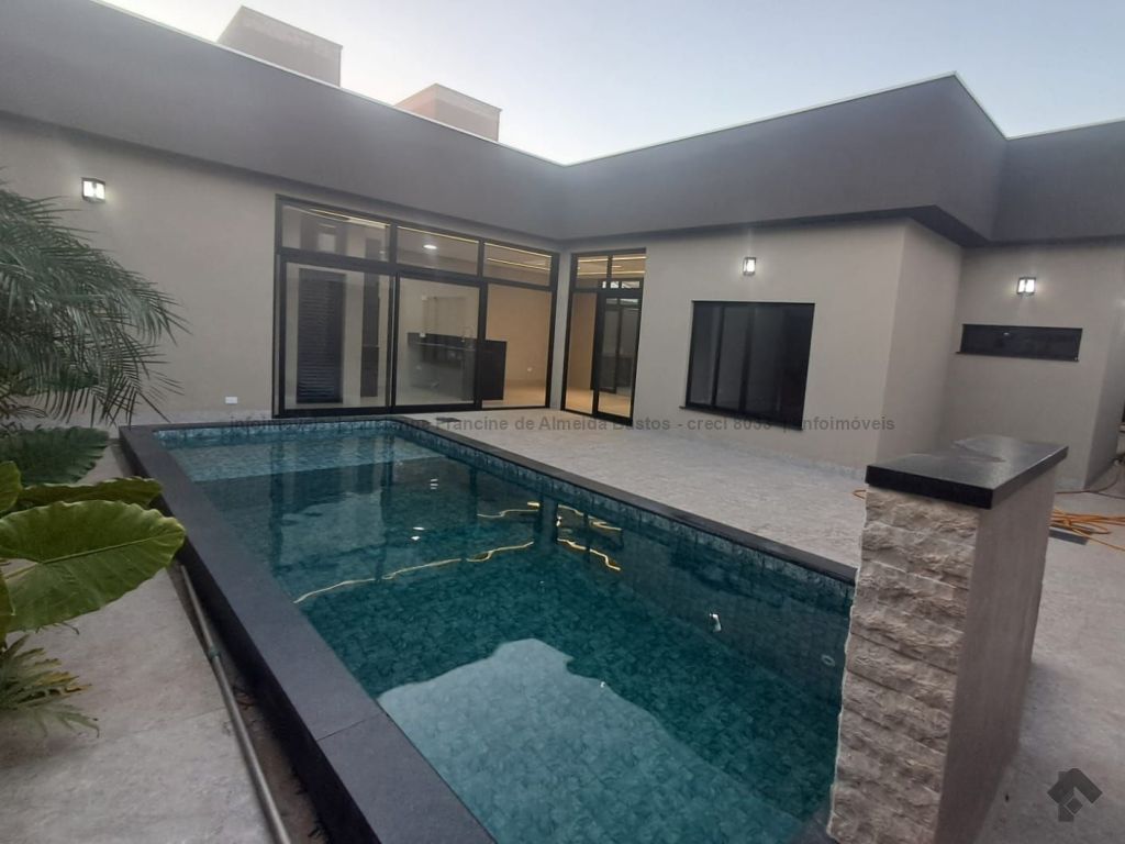 Alto padrão, área gourmet e piscina. Detalhes de decoração em todos os ambientes. Alto padrão de acabamento e projeto arquitetônico diferenciado. Ambientes aconchegantes e espaçosos. Espaço na frente para carro. Forro de gesso rebaixado e iluminação em LED. Todos os cômodos com iluminação natural e janelas grandes. Sala de estar com possibilidade de mesa de jantar. Cozinha espaçosa com saída para área de serviço. Suíte e quartos com espaço para cama e guarda-roupas. Área gourmet e piscina.