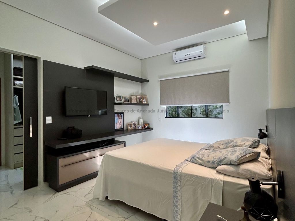 Sua procura pela casa perfeita acabou. Esse imóvel conta com energia solar, água aquecida, móveis planejados, sistema de câmeras. A parte interna é composta por uma sala de estar/TV, lavabo, jardim de inverno separando os ambientes, sala de jantar, cozinha com móveis planejados e ilha, despensa, 01 suíte com closet, demi-suíte (dois quartos com um banheiro). A área externa conta com churrasqueira, banheiro social, lavanderia fechada e espaço para colocar uma piscina.