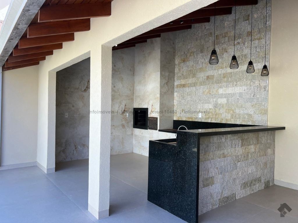 Frente belíssima com garagem para 04 carros, sala ampla para 02 ambientes integrada com cozinha e espaço gourmet. Cozinha planejada mais área de serviço separada. Suíte com closet, 02 quartos, sendo 01 com armário, lavabo, espaço gourmet completo com churrasqueira, forno de pizza, fogão a lenha, energia fotovoltaica.