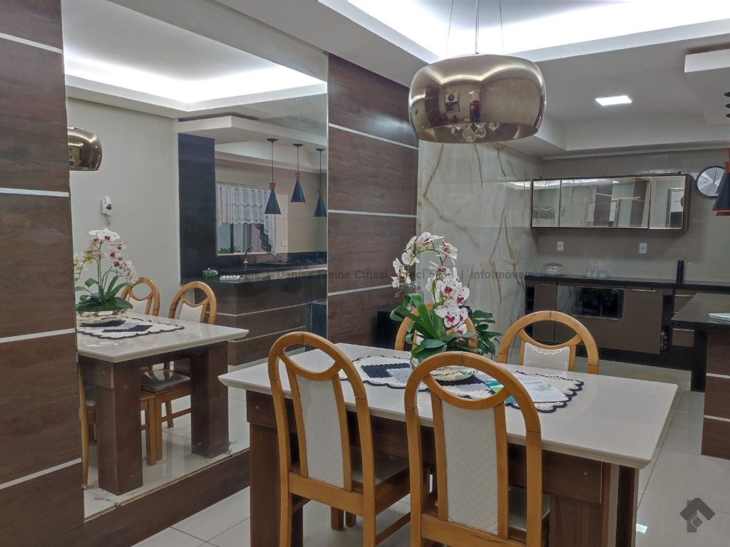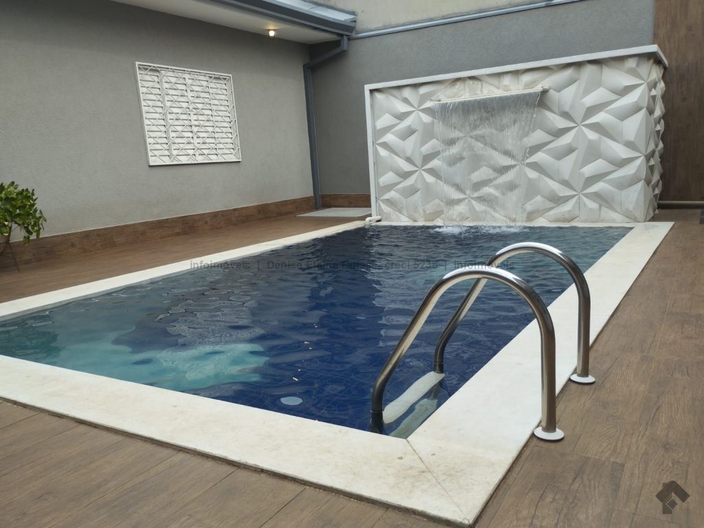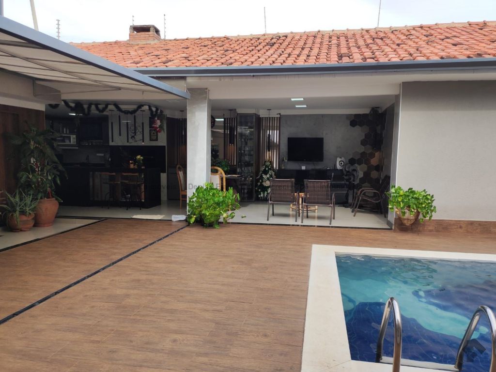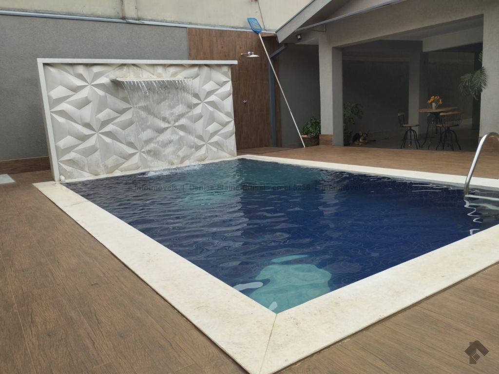 Venha conhecer esta casa que contém uma sala de tv, sala de estar e sala de jantar, dois quartos, um apartamento com closet, banheiro social, cozinha planejada, lavanderia coberta com despensa, um quarto com wc extra. Garagem para até 3 veículos. Alarme e câmara de segurança. E o lugar preferido deste imóvel é a área gourmet com ilha, churrasqueira, armários, espelhos, cristaleira e uma piscina maravilhosa.