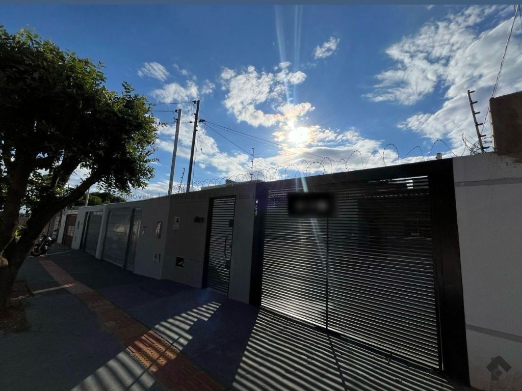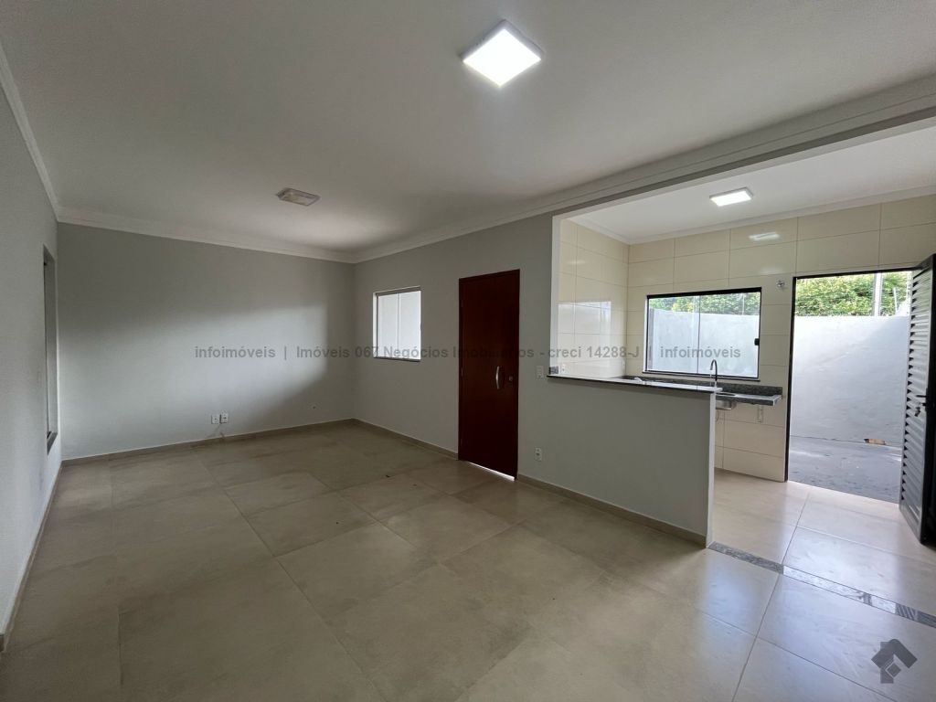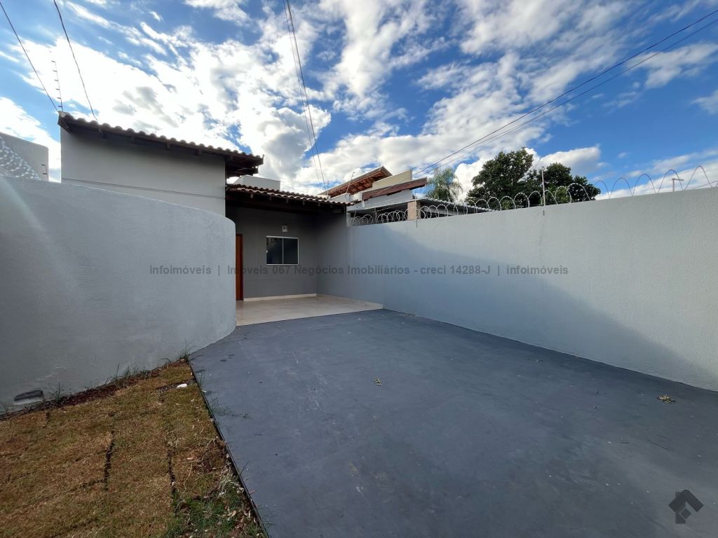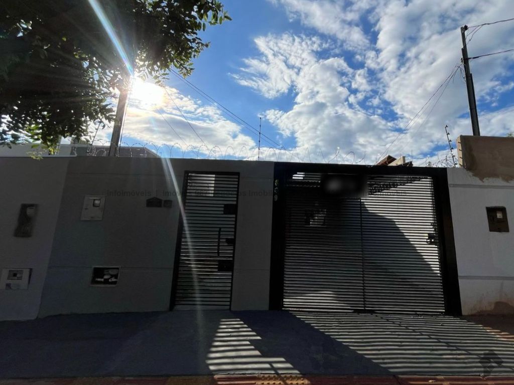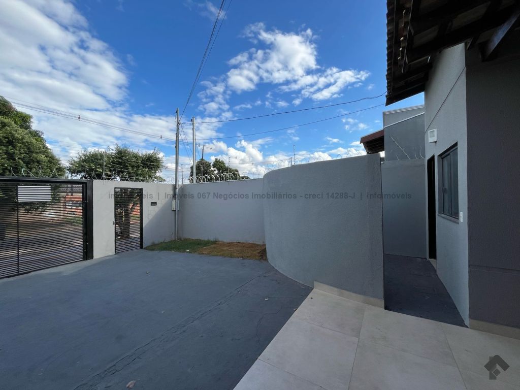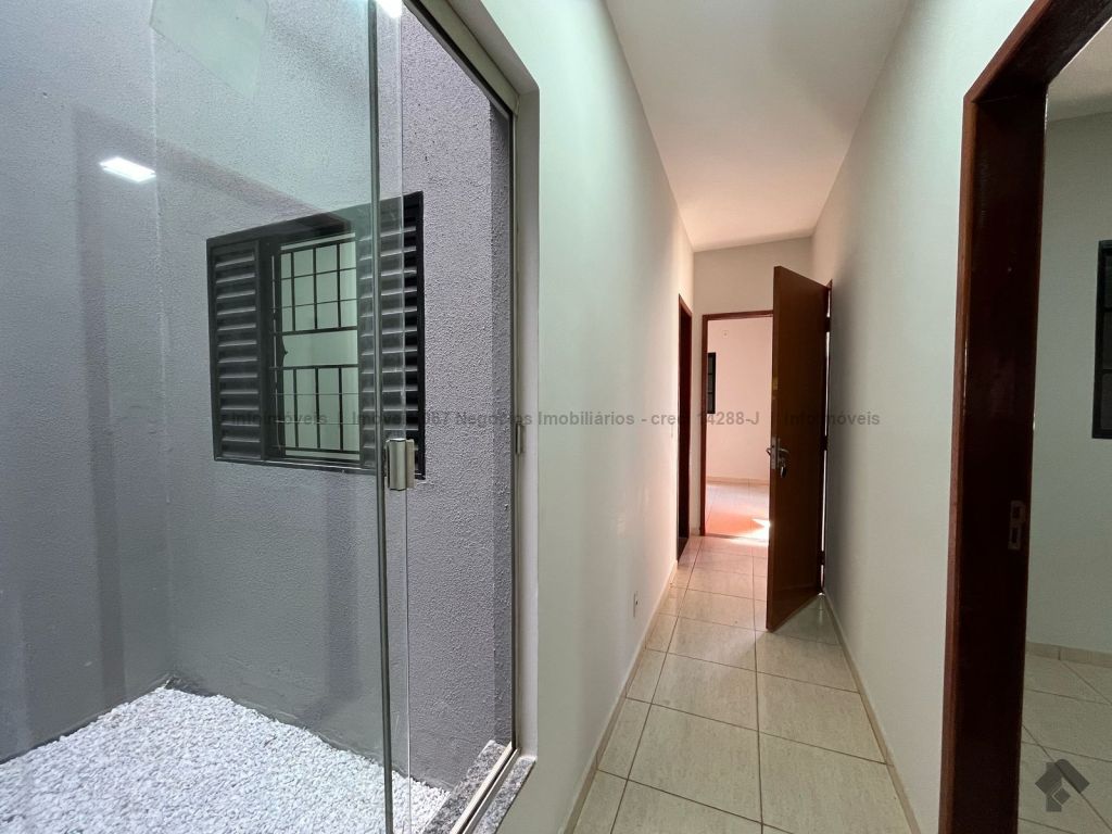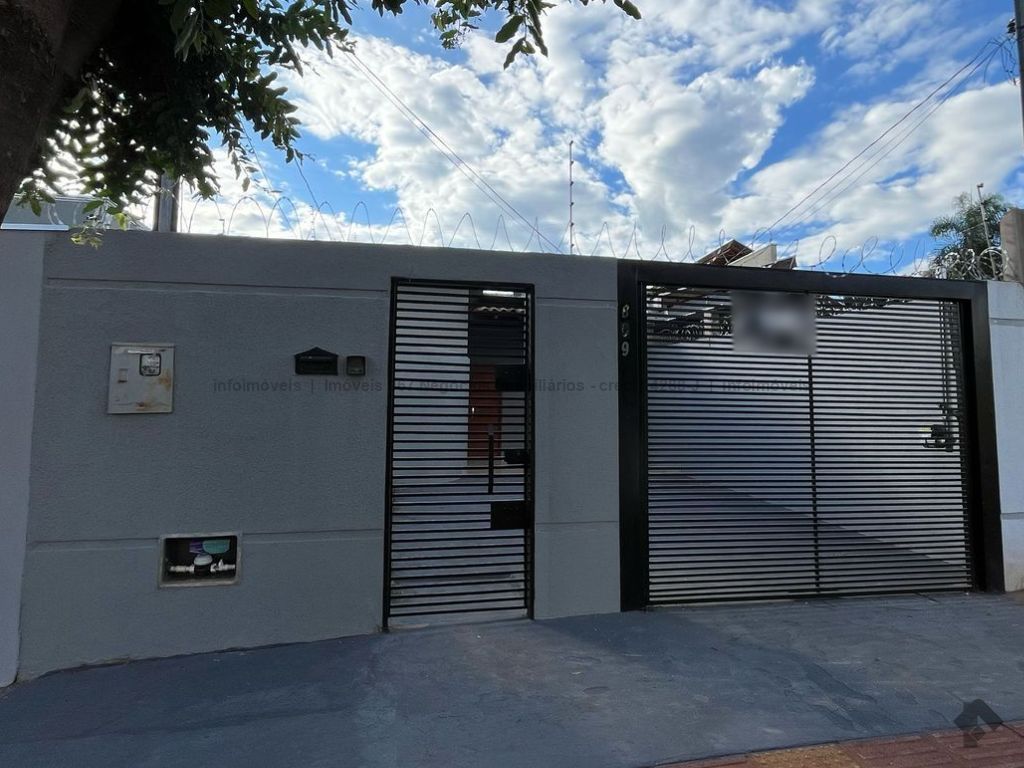 Casa térrea no asfalto com dois jardins de inverno, uma suíte, dois quartos, um banheiro social, corredor com acesso aos quartos, cozinha americana com cooktop, sala de TV e sala de estar, lavanderia coberta, fundo coberto e calçado com piso, portão eletrônico, portão social e garagem para até três carros, toda calçada.