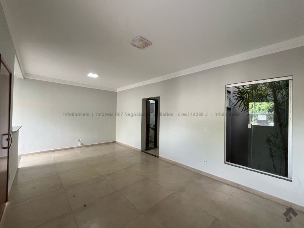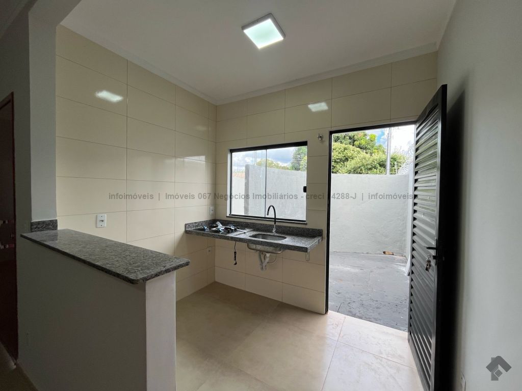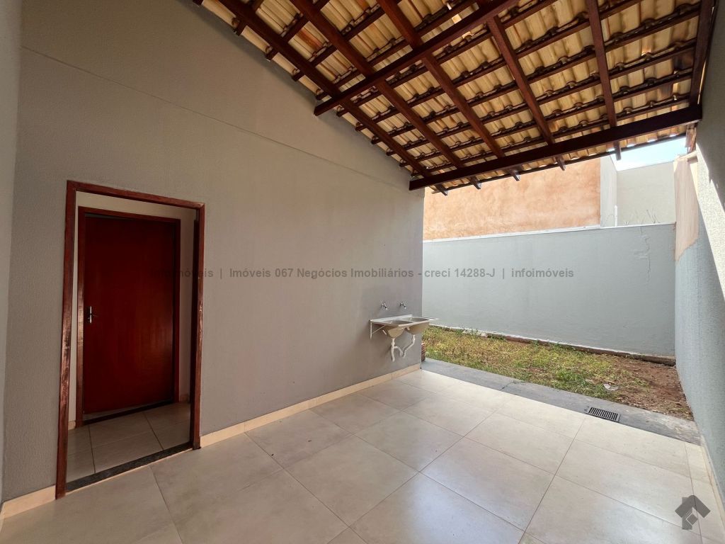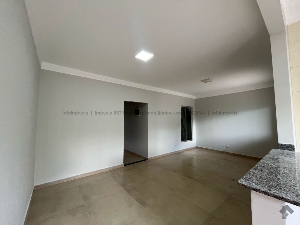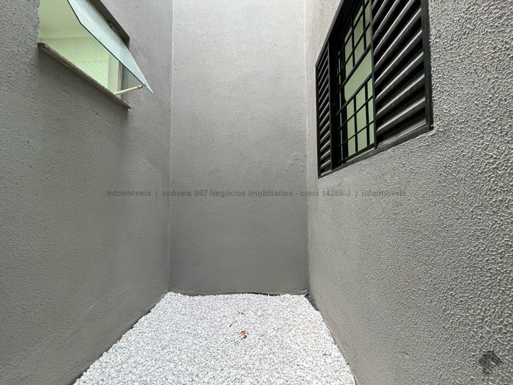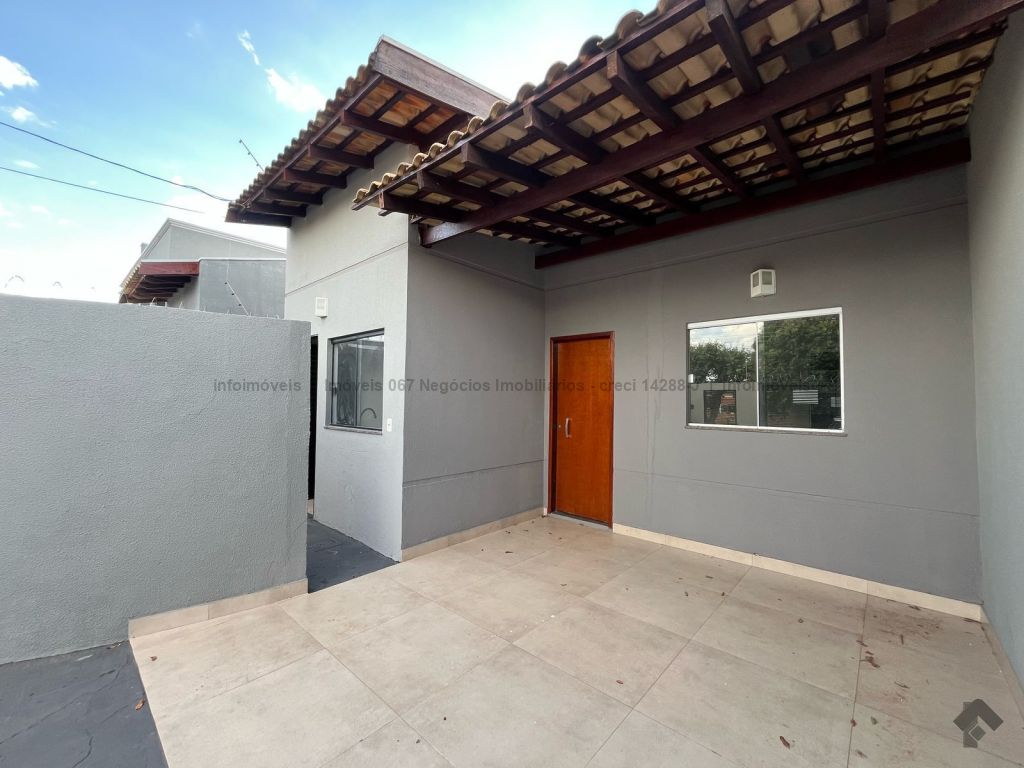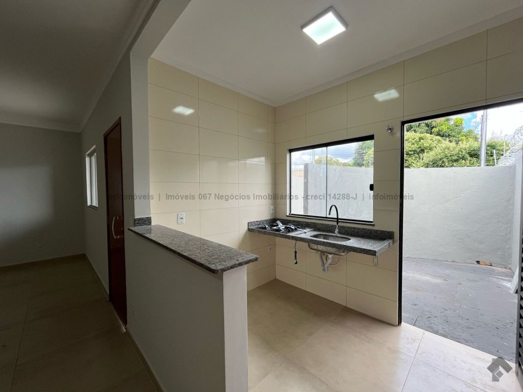 Casa térrea no asfalto com dois jardins de inverno, uma suíte, dois quartos, um banheiro social, corredor com acesso aos quartos, cozinha americana com cooktop, sala de TV e sala de estar, lavanderia coberta, fundo coberto e calçado com piso, portão eletrônico, portão social e garagem para até três carros, toda calçada.