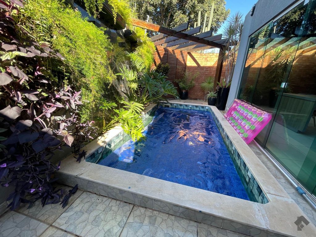 Casa com acabamento impecável, com suíte com closet, mais dois quartos, banheiro social, salas de TV e jantar, cozinha com espaço gourmet, piscina e área de serviço.