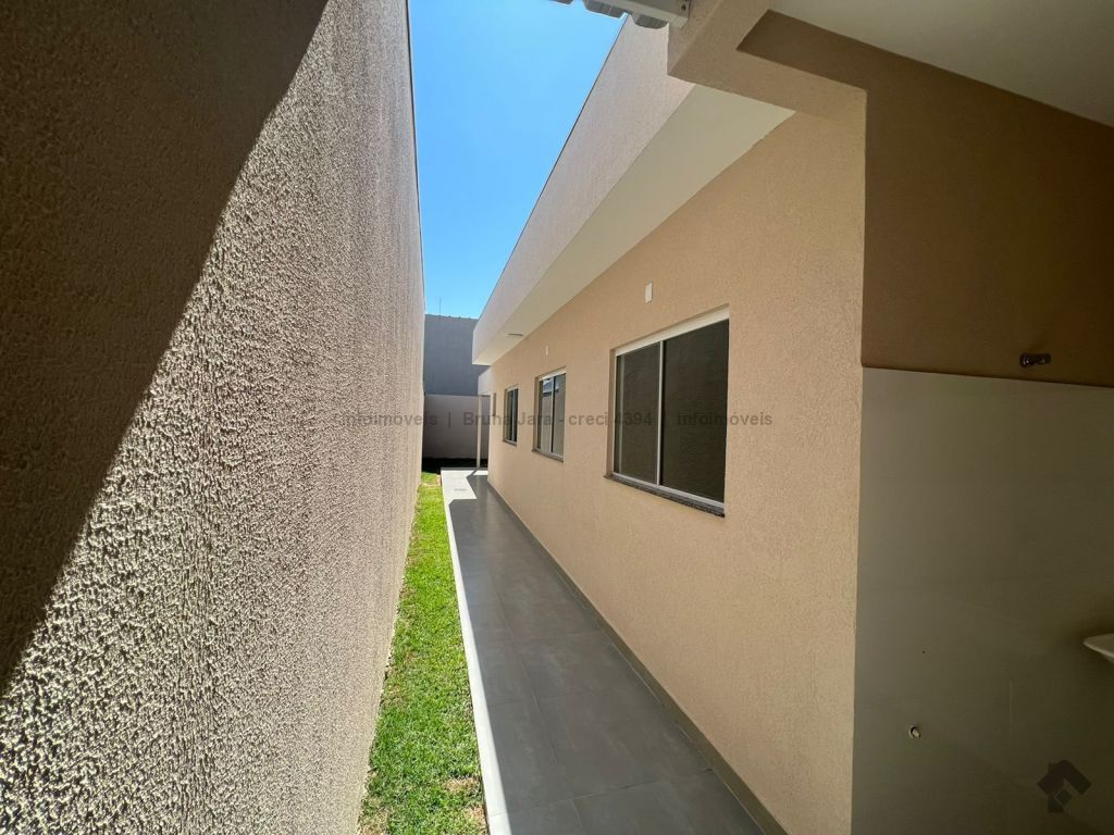 Casa térrea nova com ótimo acabamento, composta de 03 dormitórios, sendo 01 suíte com closet, banheiro social, sala para 02 ambientes, cozinha ampla, área de serviço coberta, área gourmet aconchegante, varanda, vaga de garagem para 02 carros. Possui iluminação em LED, os pisos e revestimentos internos e externos são em porcelanato acetinado. Possui portão eletrônico e cerca elétrica.