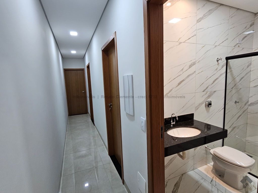 Imóvel constituído por sala, cozinha, área de serviço coberta, suíte, dois quartos, banheiro social, varanda com churrasqueira e vaga de estacionamento.