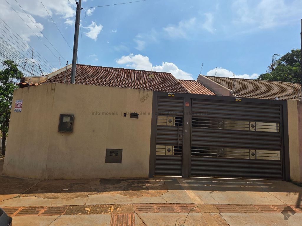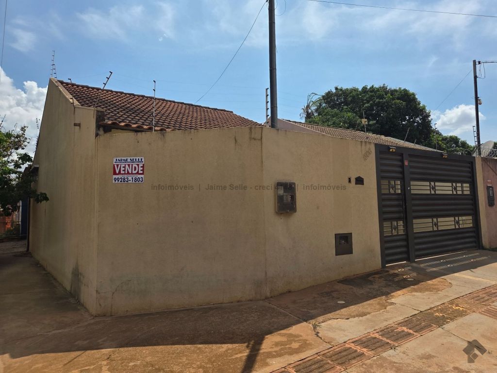 Casa de esquina, asfalto ao lado, 2 quartos, sala, cozinha, área de serviço, garagem coberta para 4 carros, churrasqueira, 2 banheiros, um na suíte e outro para visitas.