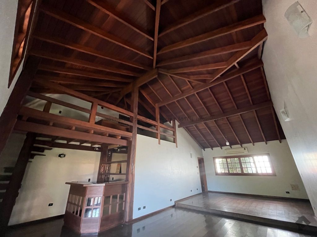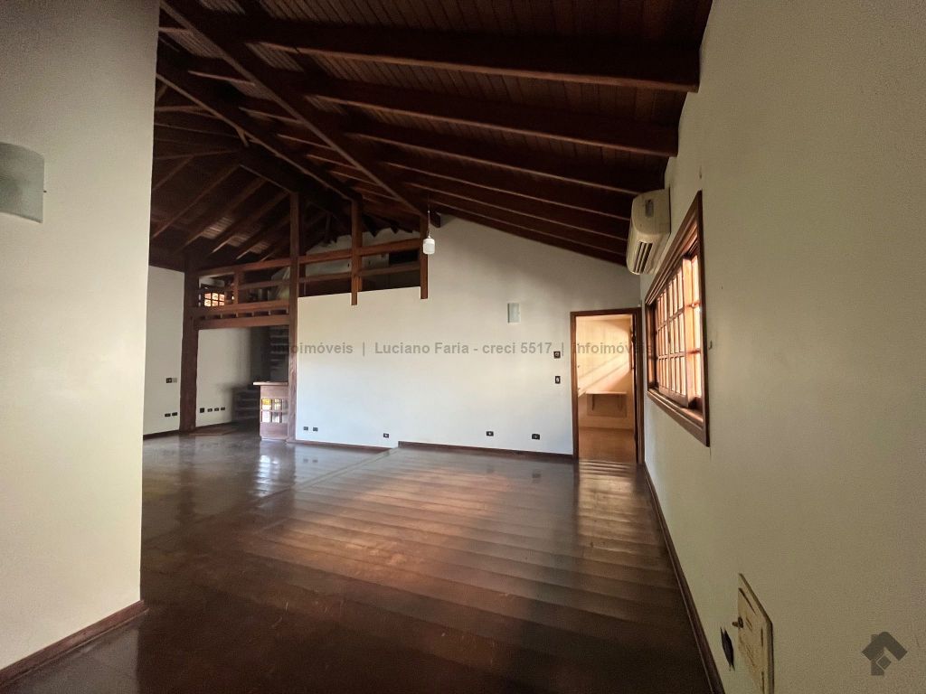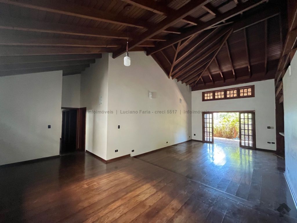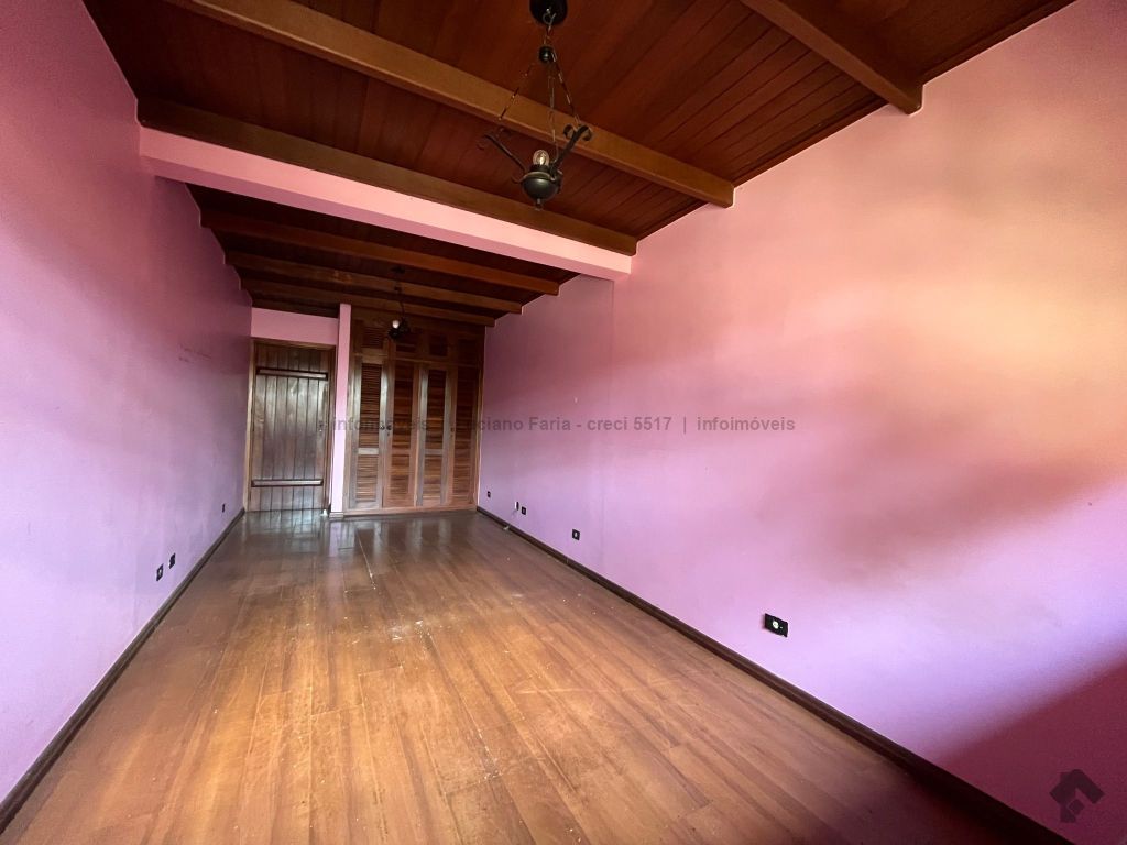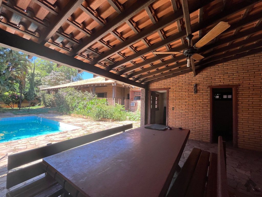 Salão com pé direito alto, forro trabalhado em madeira de lei, mezanino, lavabo, escritório com acesso para área externa, banheiro social, 2 quartos reversíveis para salas e suíte master, cozinha planejada com despensa e quarto com banheiro para funcionários. Imóvel com recuo e ampla sobra de terreno frontal para futura construção, 24 metros de testada frontal. Varanda e 4 vagas de garagem. Piscina e churrasqueira coberta. Amplo espaço para estacionamento, esquina.