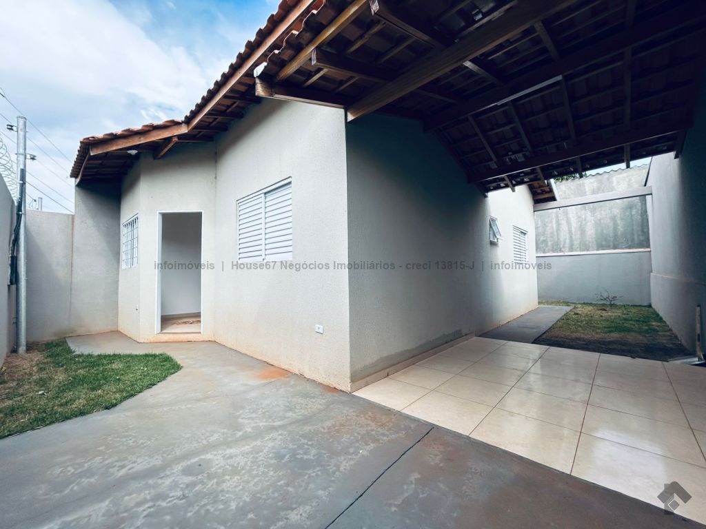 Casa com 2 quartos no bairro São Conrado, sala, cozinha, 2 quartos, banheiro social, área de serviço coberta, 2 vagas de garagem, corredor lateral e quintal. Área construída de 60 m² e área de terreno de 117 m².