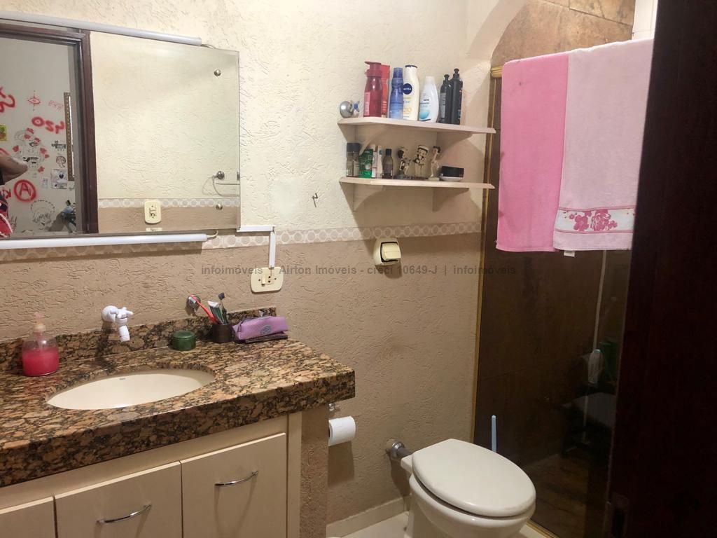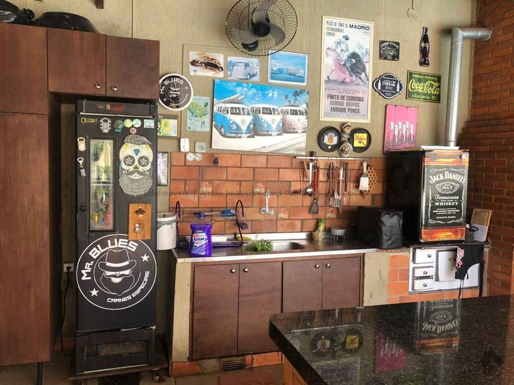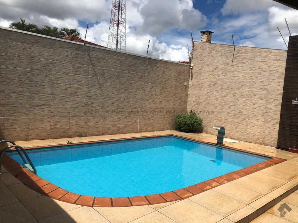 Casa contém: três salas, sala de estar, jantar e TV, cozinha com armários, churrasqueira, espaço gourmet, forno fogão de ferro/lenha, cooktop/gás com bancada de granito, 3 quartos, sendo um apartamento, lavabo, piscina grande com terreno mede 12 x 38m = 456,00 m², segurança 24 horas (guarita na esquina da casa). Na Frente garagem para dois carros e jardim.