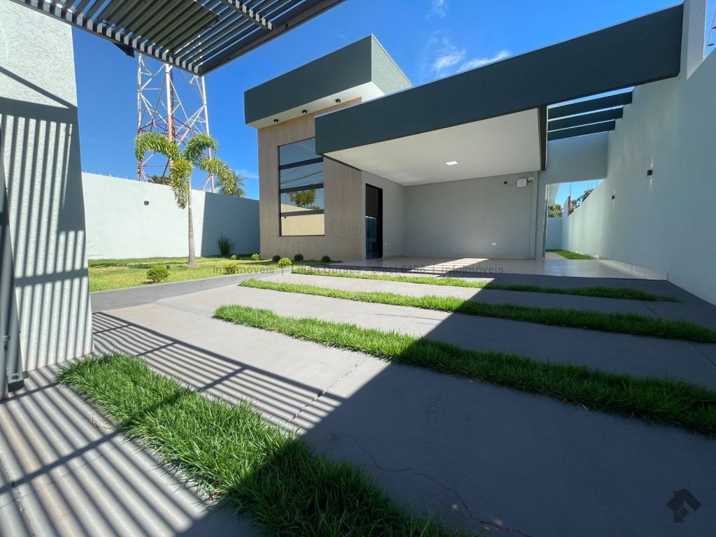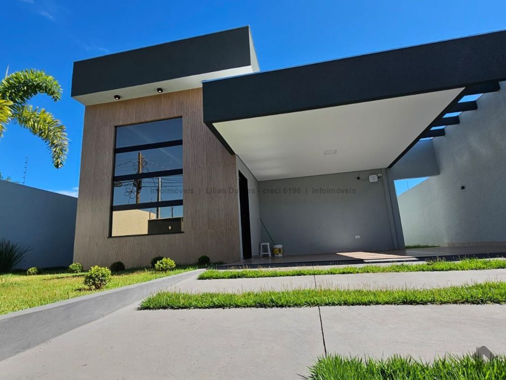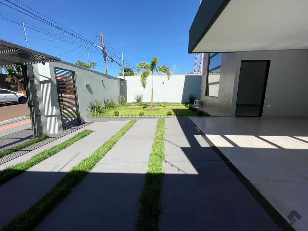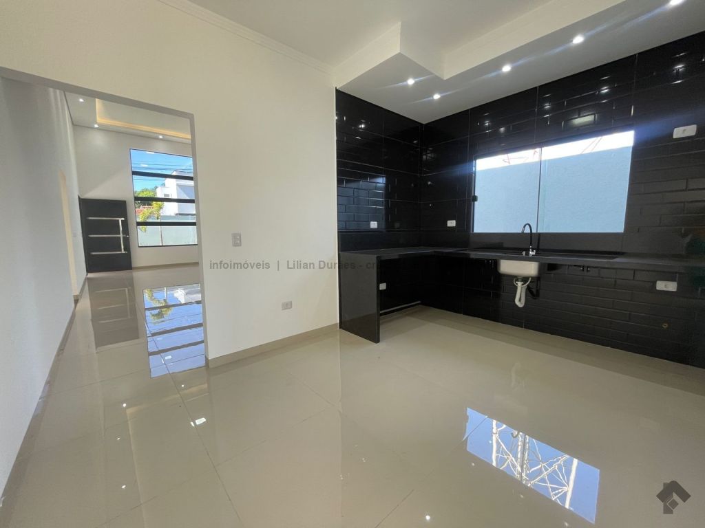 Casa térrea com sala ampla, pé direito duplo, cozinha, banheiro, 3 dormitórios sendo 1 suíte, terreno amplo de paisagismo.