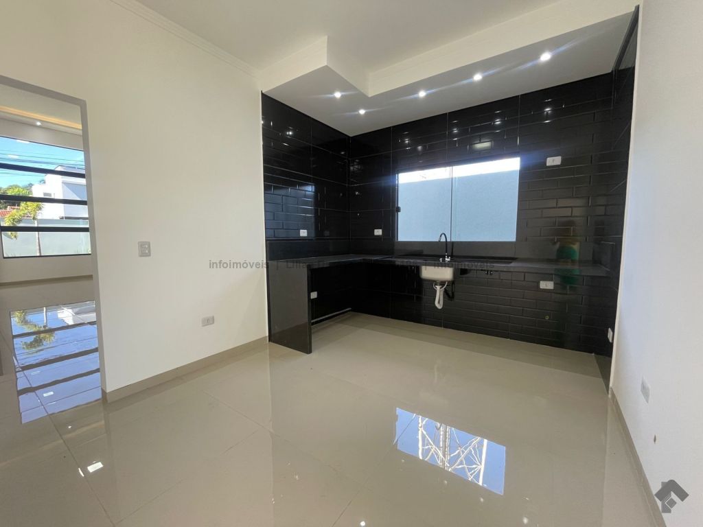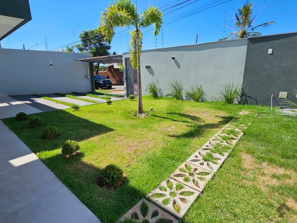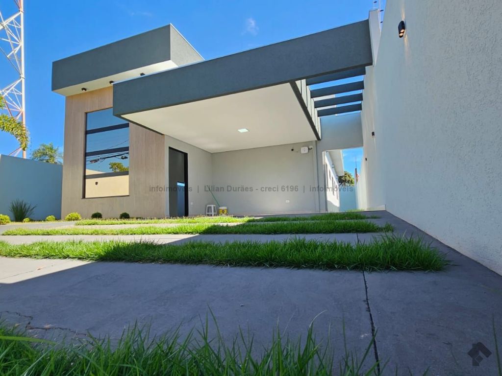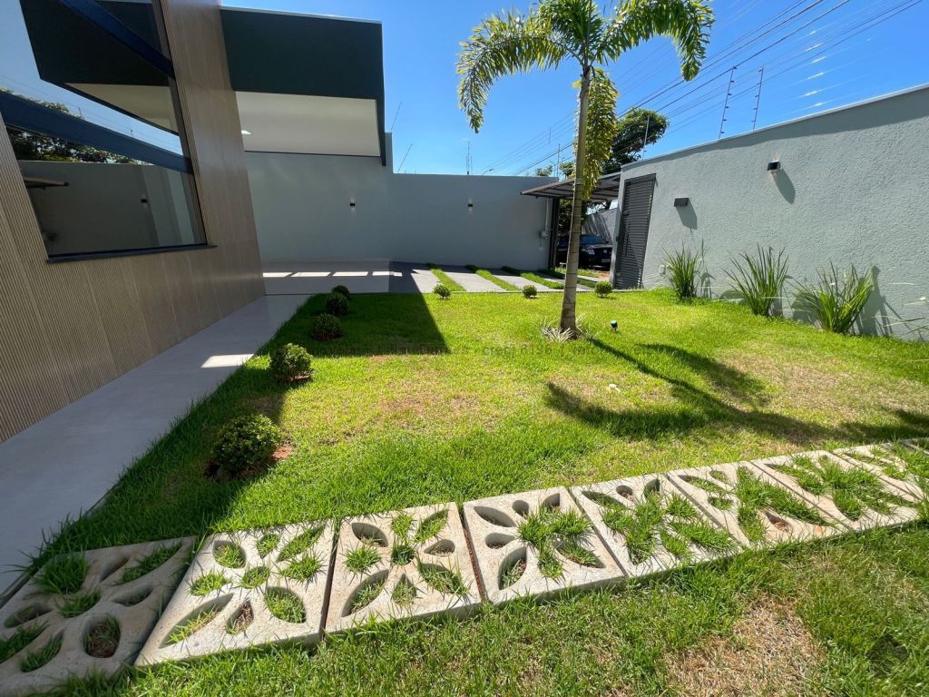 Casa térrea com sala ampla, pé direito duplo, cozinha, banheiro, 3 dormitórios sendo 1 suíte, terreno amplo de paisagismo.