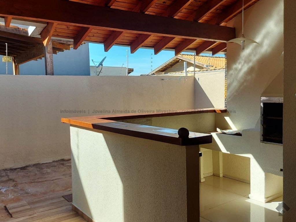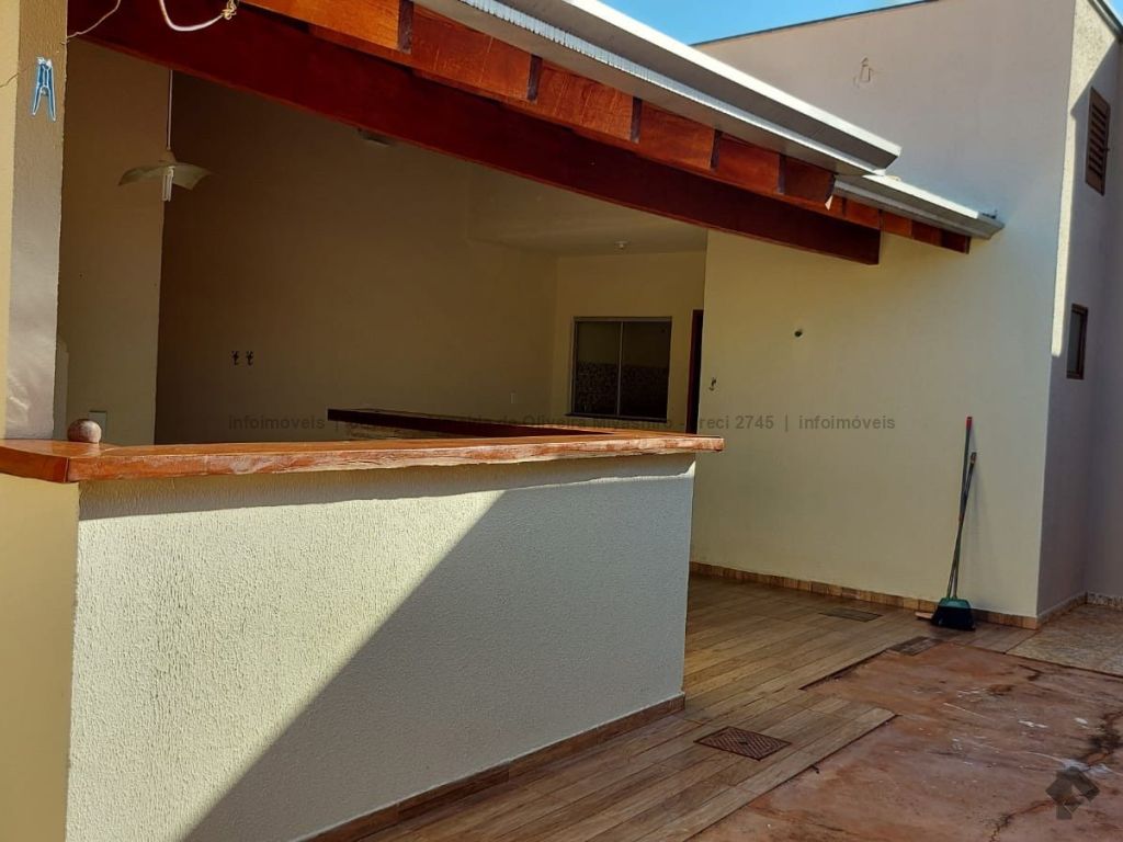 Casa com laje, telhas mescladas, portão de elevação com motor, espaço gourmet, três banheiros, um quarto externo, área externa de serviço.