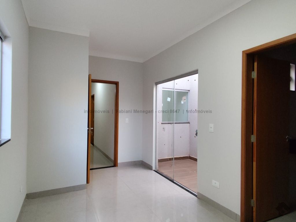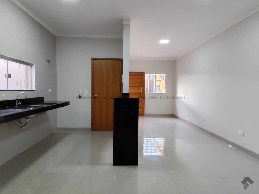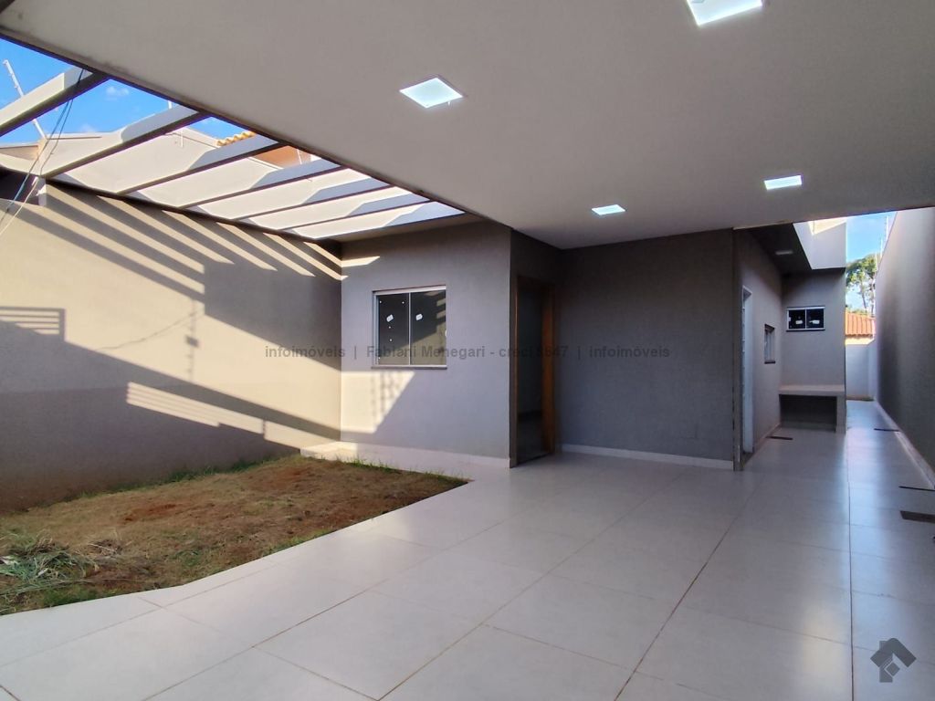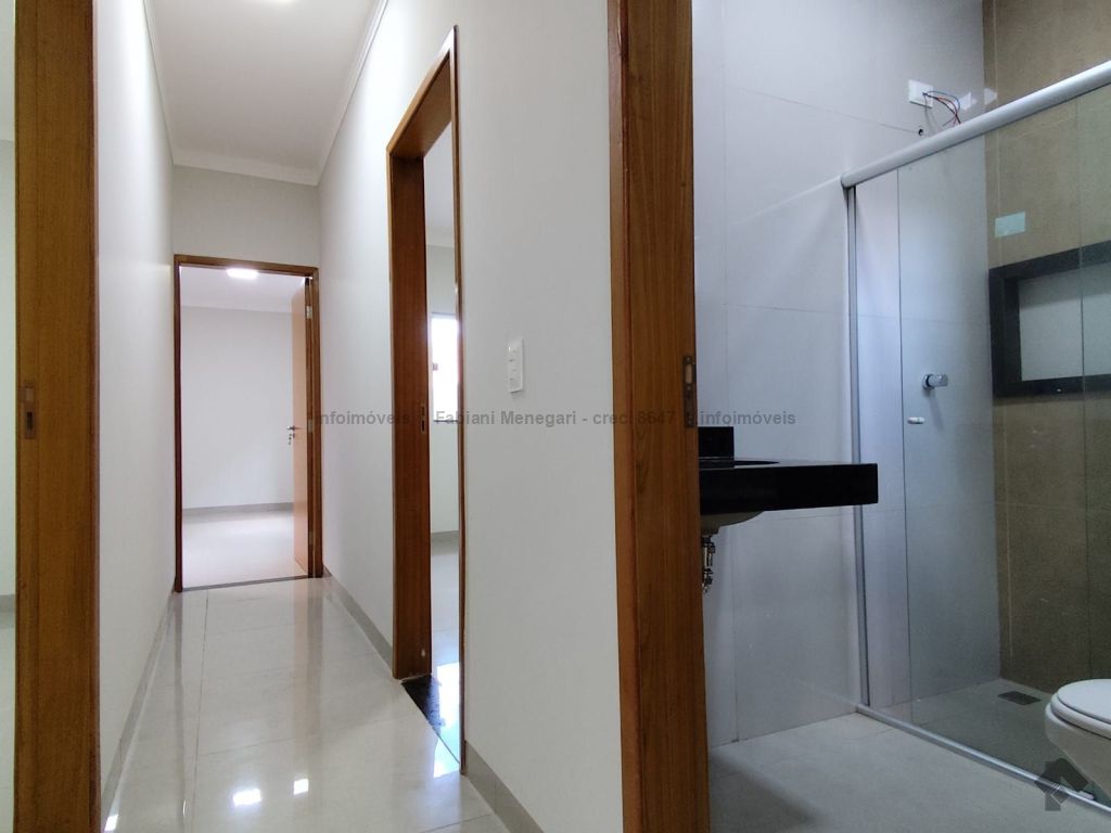 Vaga de garagem ampla e coberta, sala de estar, sala de jantar, cozinha, área de serviço coberta e reservada, banheiro social, uma suíte e dois dormitórios, corredor lateral amplo, sobra de quintal para implantação de varanda gourmet. Área total de 178 m² e construção de 99 m².