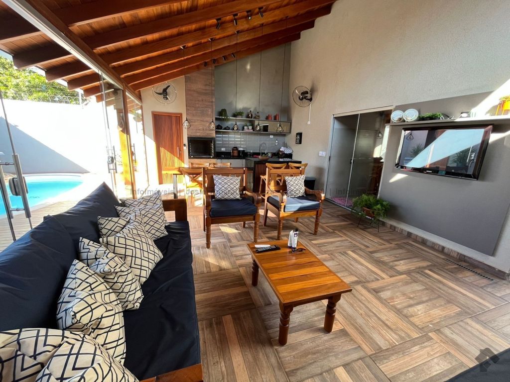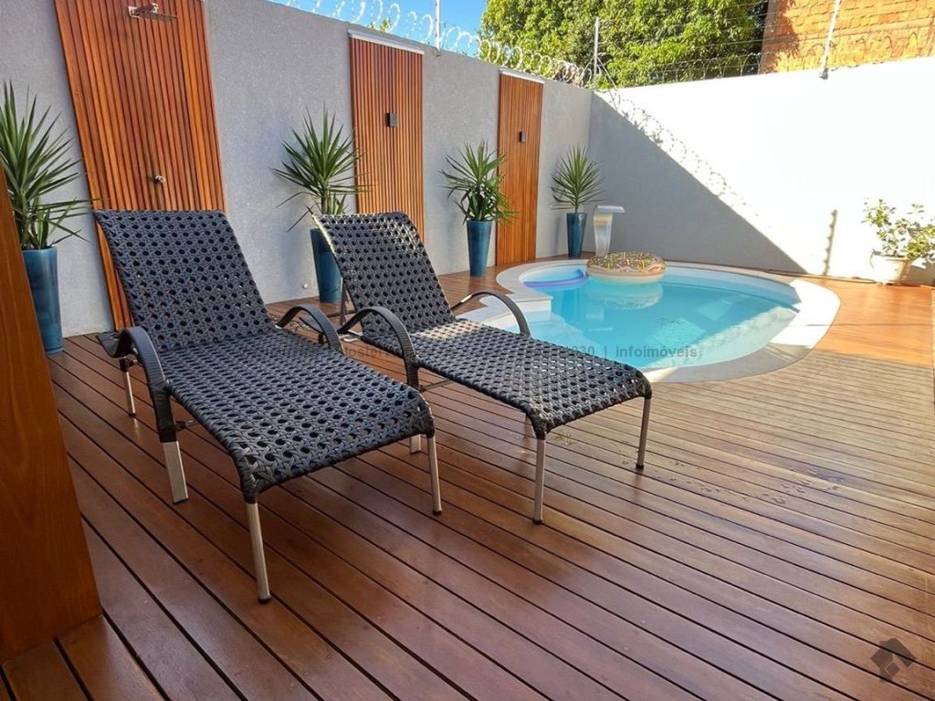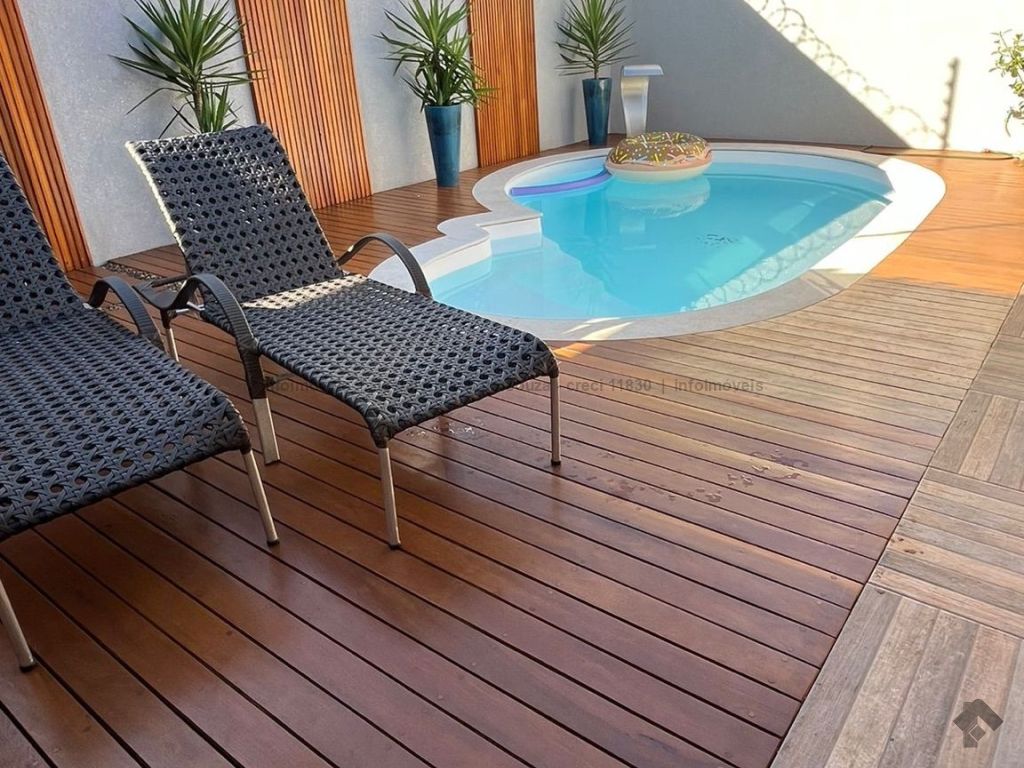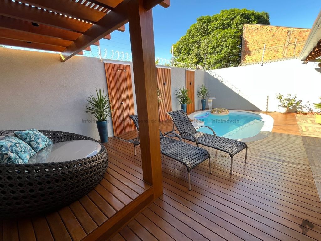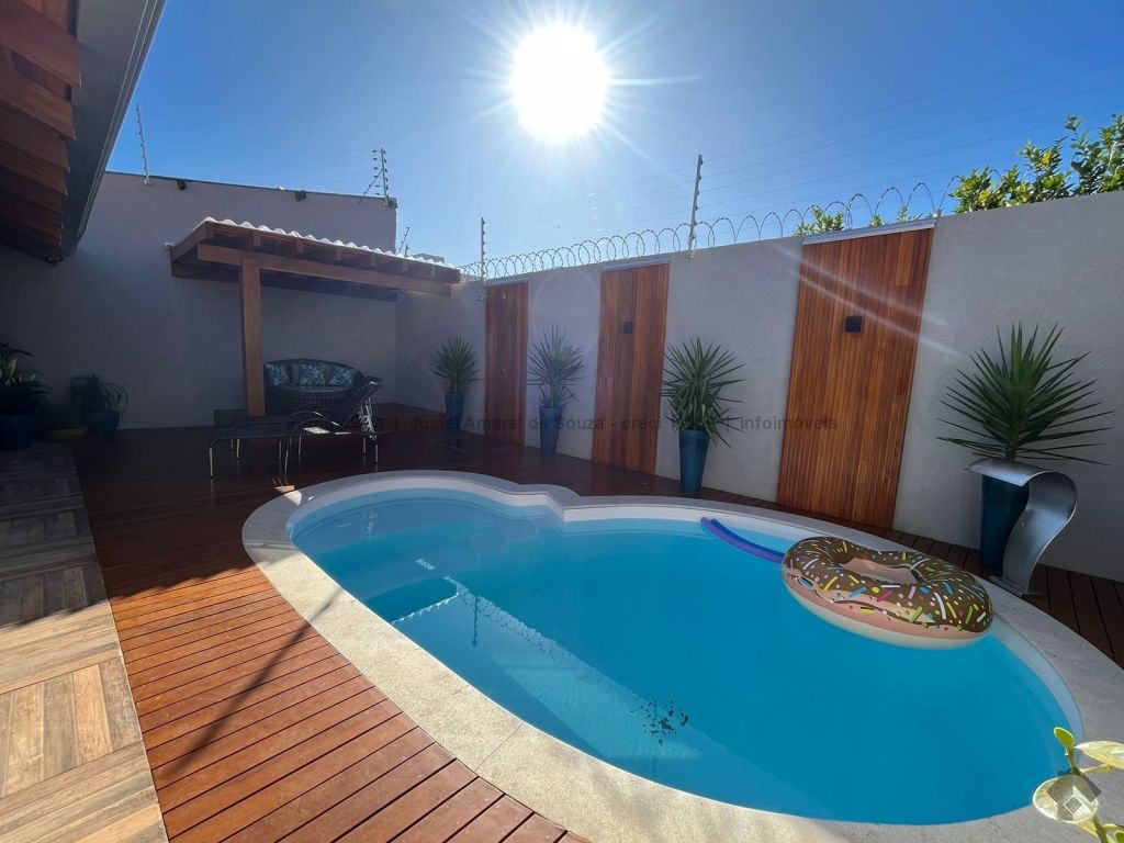 Belíssima casa contendo sala, cozinha, banheiro social, 2 quartos sendo 1 suíte, corredor lateral, área gourmet, piscina, deck de madeira, tudo de primeira qualidade, acabamento impecável.