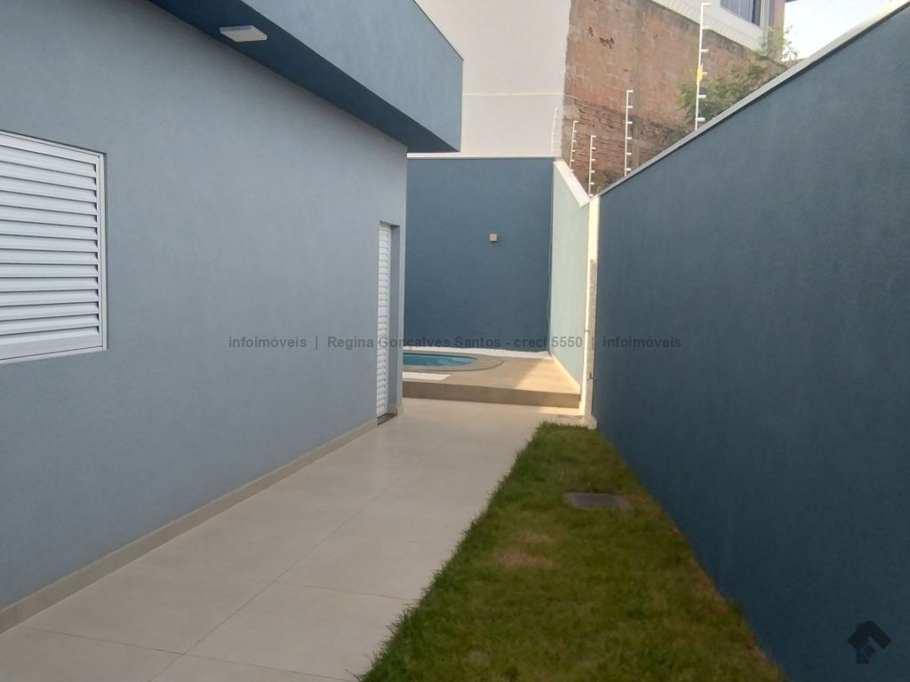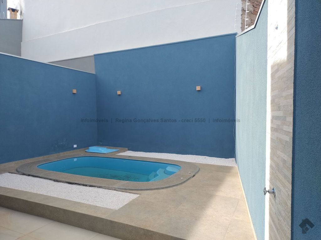 Contém 1 suíte com closet, 1 apto, 1 quarto, WC social, cozinha ampla, sala ampla, pé direito alto com sanca e iluminação embutida, área gourmet com churrasqueira e bancada ampla, WC serviço, lavanderia coberta, piscina, garagem para 2 carros. Jardim de inverno no corredor interno entre os quartos. Todo piso e revestimentos em porcelanato, pintura de primeira linha com pele de vidro, rica em blindex, venezianas nos quartos para o seu sono tranquilo.