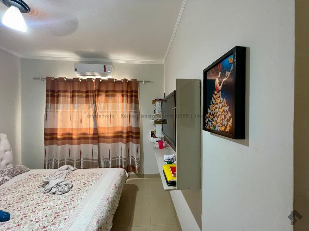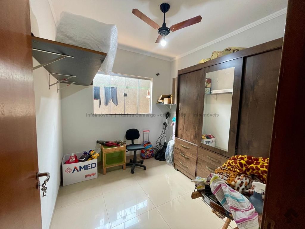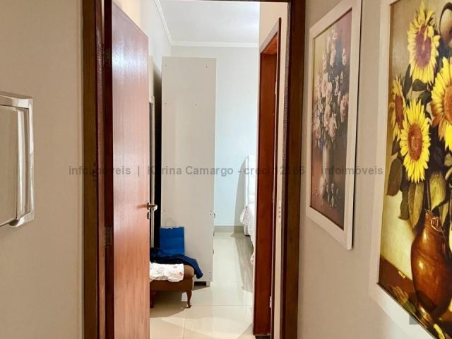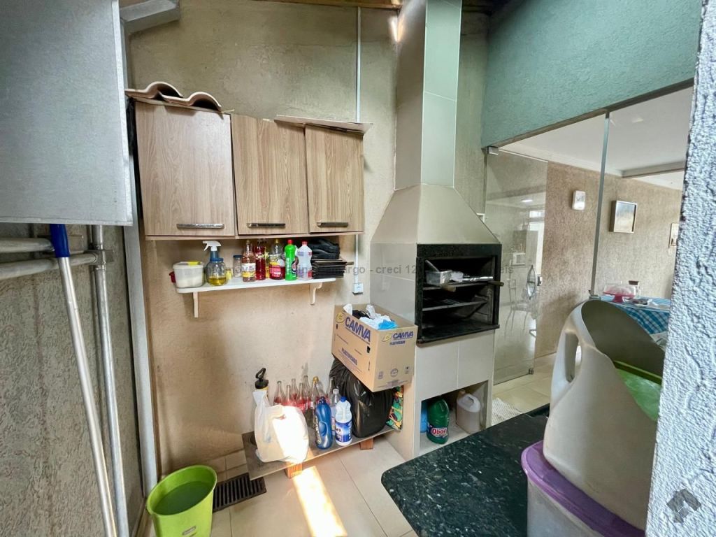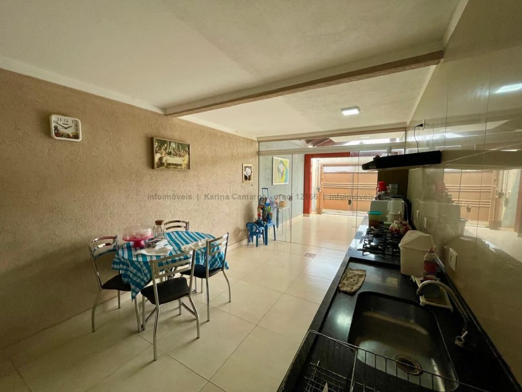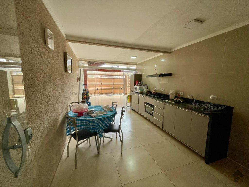 O imóvel possui três dormitórios, sendo uma suíte, com cômodos amplos, sala para dois ambientes, cozinha fechada e ampliação da cozinha para área externa, além de churrasqueira. O imóvel é todo em porcelanato, garagem comporta 2 veículos.