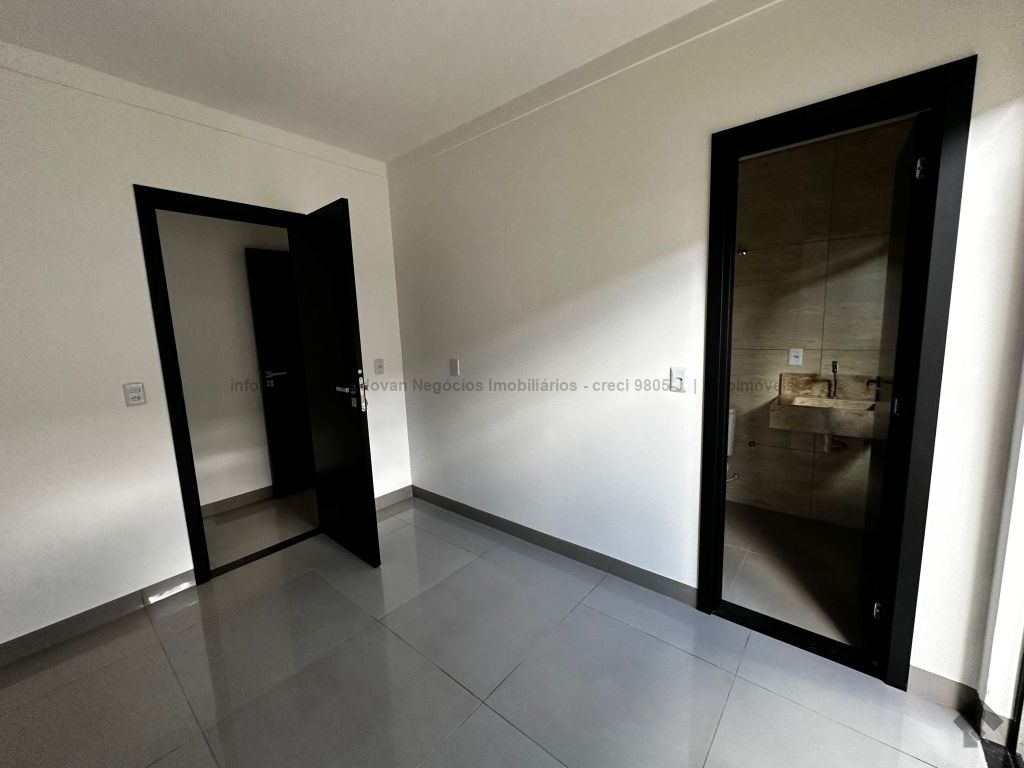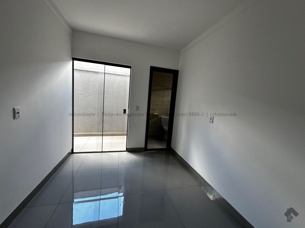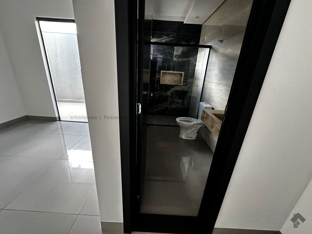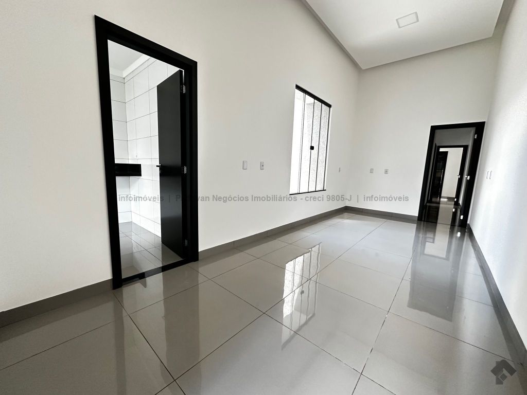 Casa com varanda gourmet, três suítes, sala ampla, cozinha integrada.