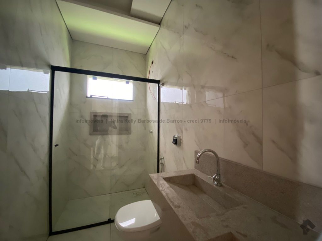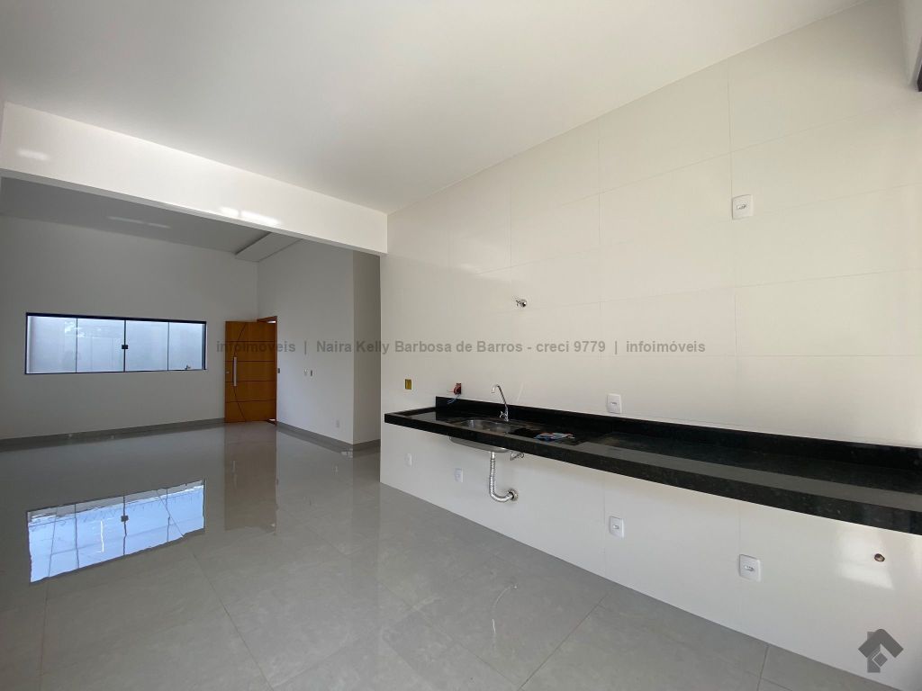 Uma suíte espaçosa, dois quartos aconchegantes, um banheiro social moderno, elegante sala de estar dois ambientes integrada com a cozinha, ampla área gourmet para reuniões familiares, lavanderia coberta, banheiro externo para seus convidados, garagem coberta para até três carros, amplo espaço de quintal para uma futura piscina, ponto para ar-condicionado pré-instalado.