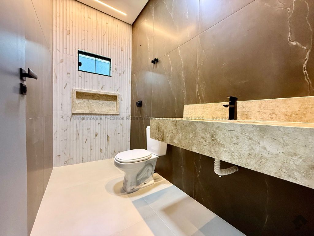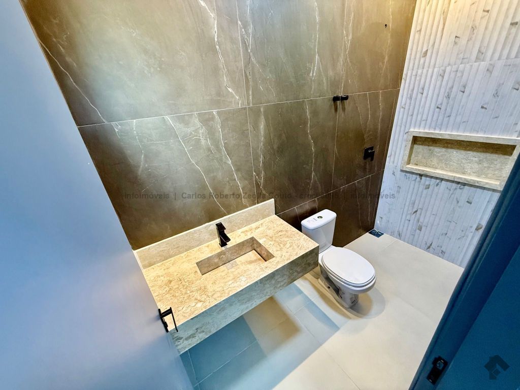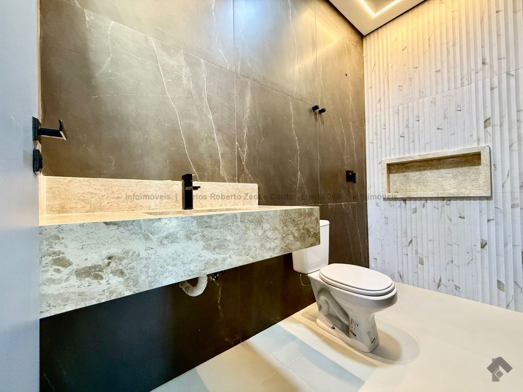 4 quartos amplos, incluindo uma suíte master com closet, 3 banheiros, sendo 1 lavabo com design elegante. Iluminação 100% em LED, que valoriza cada ambiente. Acabamento de alto padrão com porcelanato 1,20m x 1,20m. Garagem coberta para 4 carros lado a lado, com portão de 5 metros. Sistema de água quente e fria já instalado. Piscina com cascata, perfeita para momentos inesquecíveis de lazer. Espaço gourmet completo com churrasqueira, ideal para receber amigos e familiares. Jardim planejado, unindo beleza, aconchego e contato com a natureza.