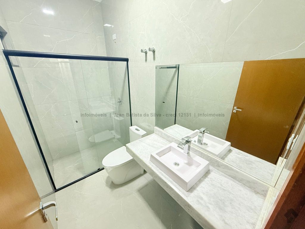 Maravilhosa casa. Esse imóvel possui 2 vagas de garagem cobertas, sala para dois ambientes e pé direito duplo, cozinha em L com bancada grande, tem preparação para aquecimento. São 3 quartos, sendo 1 suíte, com bancadas dos banheiros em mármore translúcido, 1 banheiro social, área gourmet integrada com cozinha, já coberta na parte do pergolado e área de serviço toda fechada.