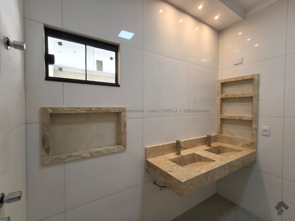 210 m² de área construída, terreno com 360 m², 4 suítes amplas, sala de estar, sala de jantar, cozinha planejada, cozinha gourmet integrada, lavabo, área de serviço, garagem para 4 carros, sistema de aquecimento solar (água quente em toda a casa), preparação para piscina (há possibilidade de entrega com piscina pronta). Segurança e conforto: cerca elétrica e concertina, interfone instalado.