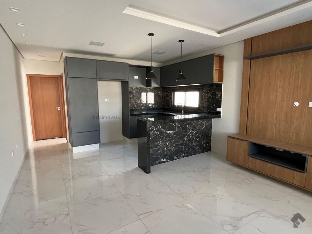 O imóvel conta com sala, dois quartos com armários planejados, sendo um suíte, cozinha, banheiro social, área de serviço coberta, garagem com três vagas, sendo duas cobertas, e área gourmet com churrasqueira.