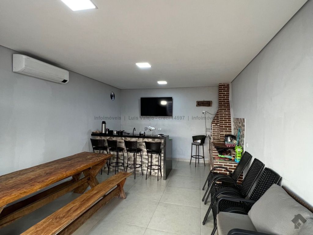 Na casa: uma suíte e um quarto com banheiro social. Sala de TV, sala de jantar, cozinha com planejados, lavanderia e garagem coberta para 3 carros. Energia fotovoltaica de 1.700 kWh. Na edícula, tem um quarto amplo, com banheiro social e uma excelente área gourmet.