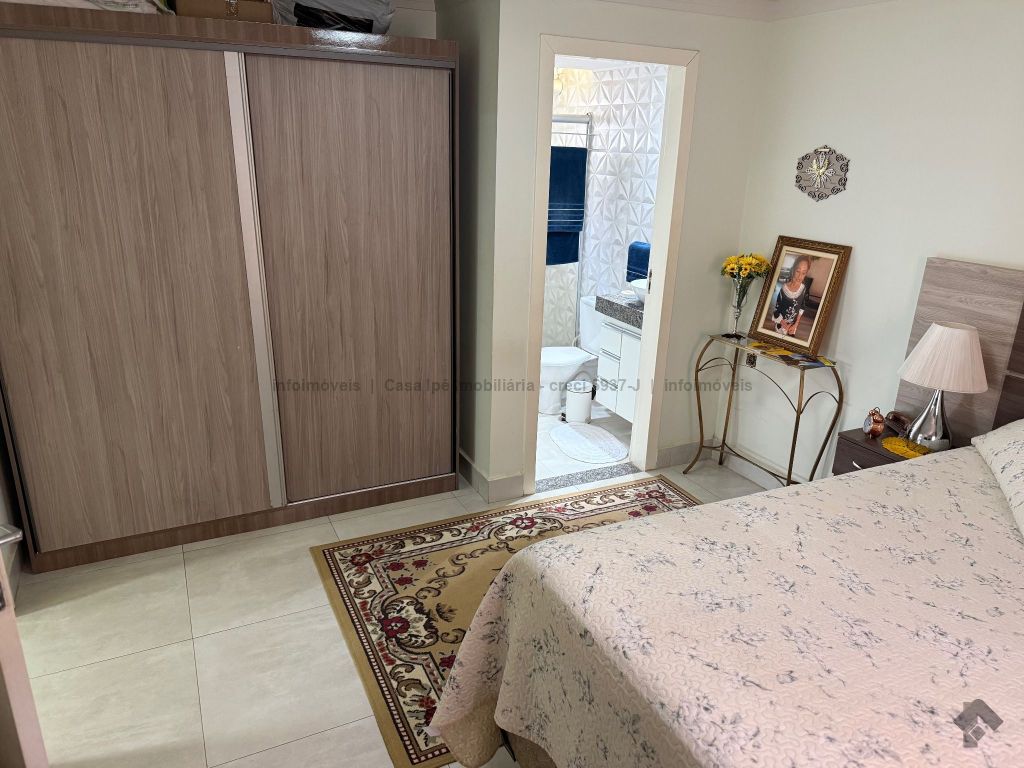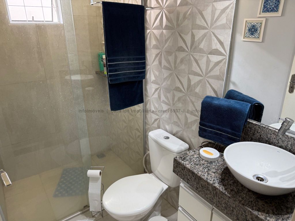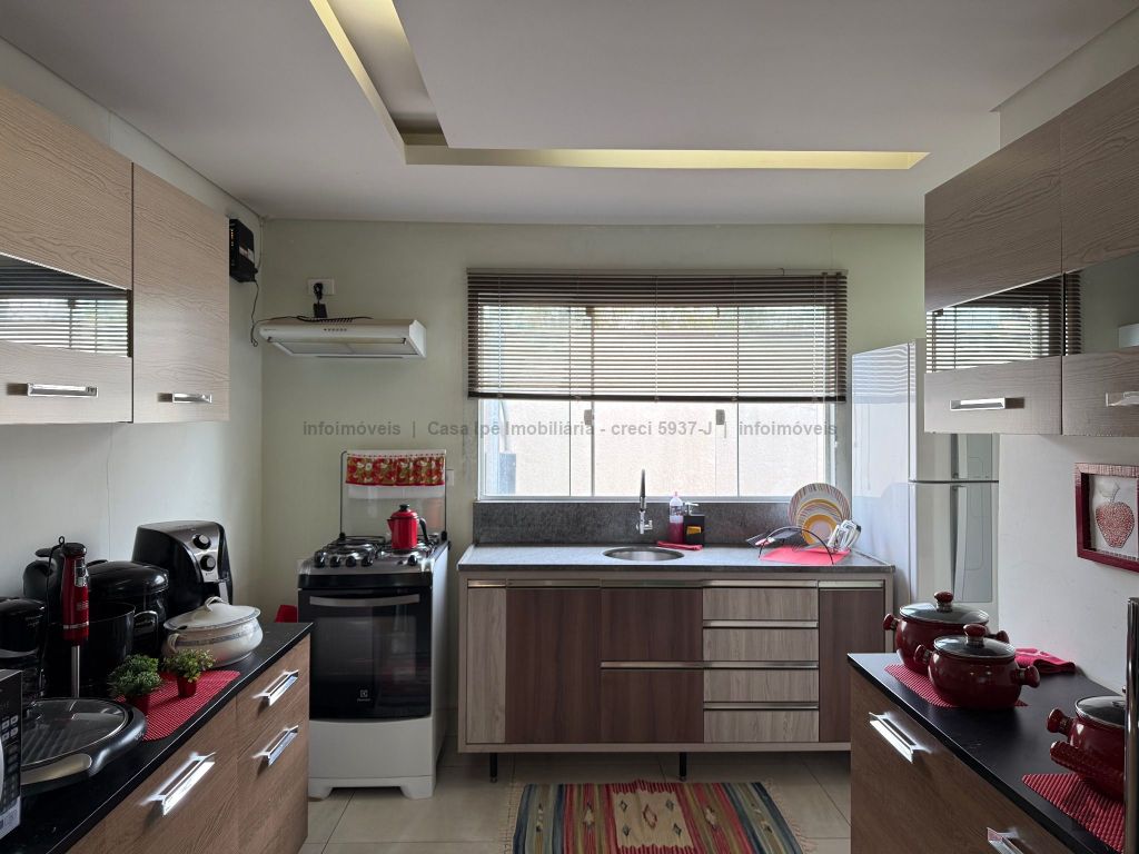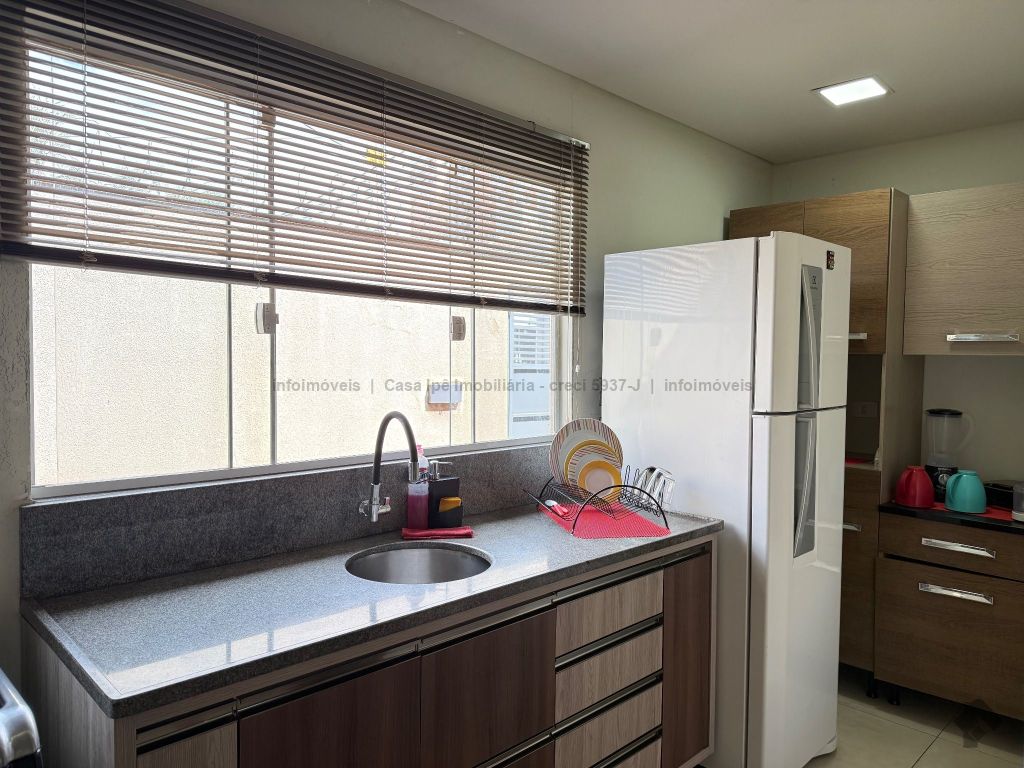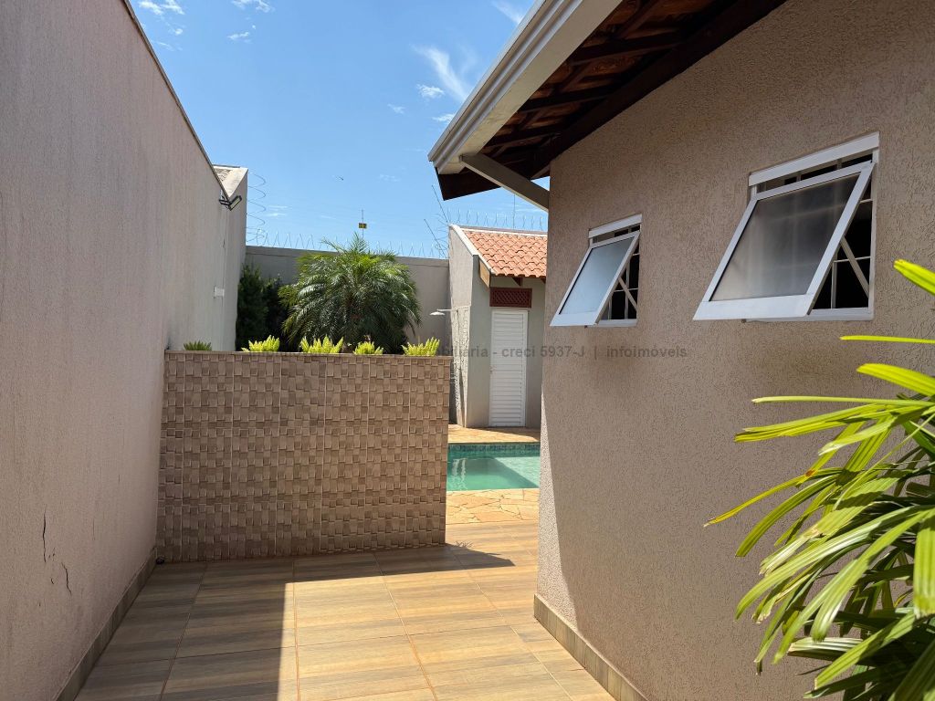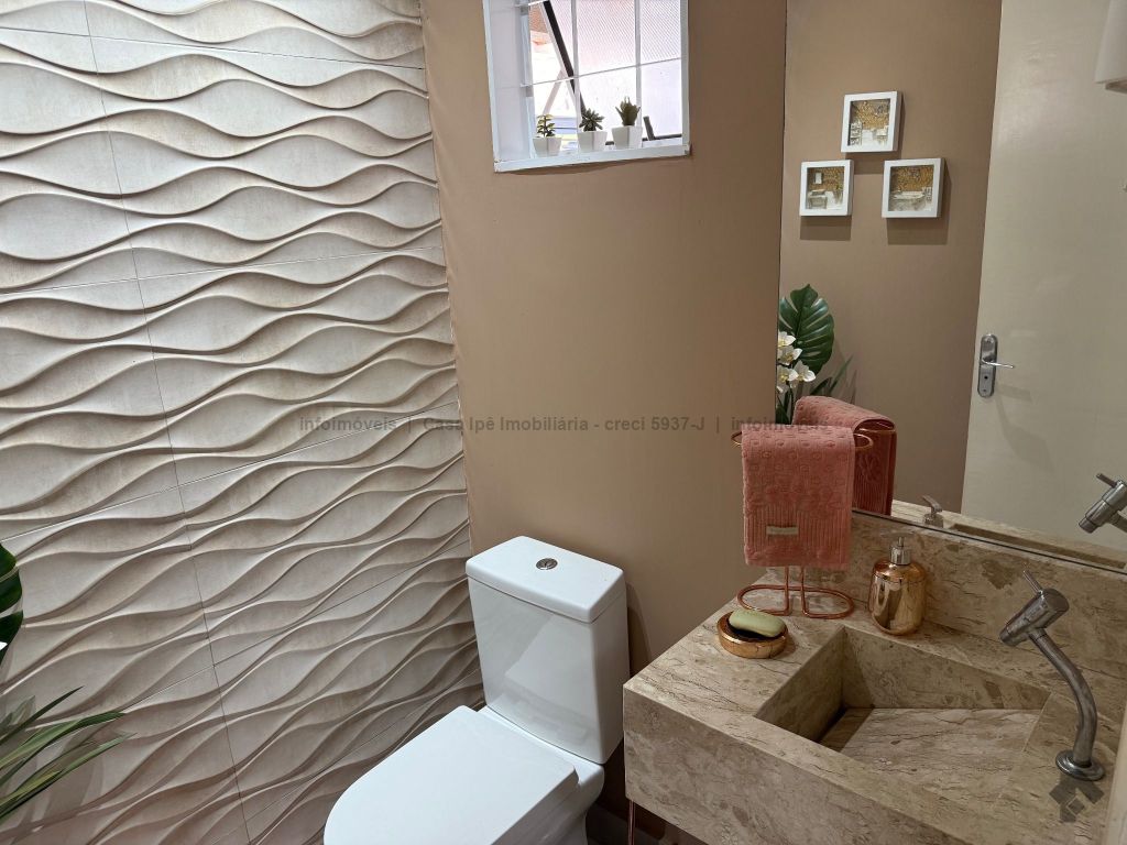 Casa térrea com três suítes, toda de laje, com sala de estar integrada à sala de jantar e televisão. Varanda gourmet espaçosa com churrasqueira, forno e fogão a lenha, integrada com piscina com hidromassagem e jardim, além de depósito e banheiro para a área externa.