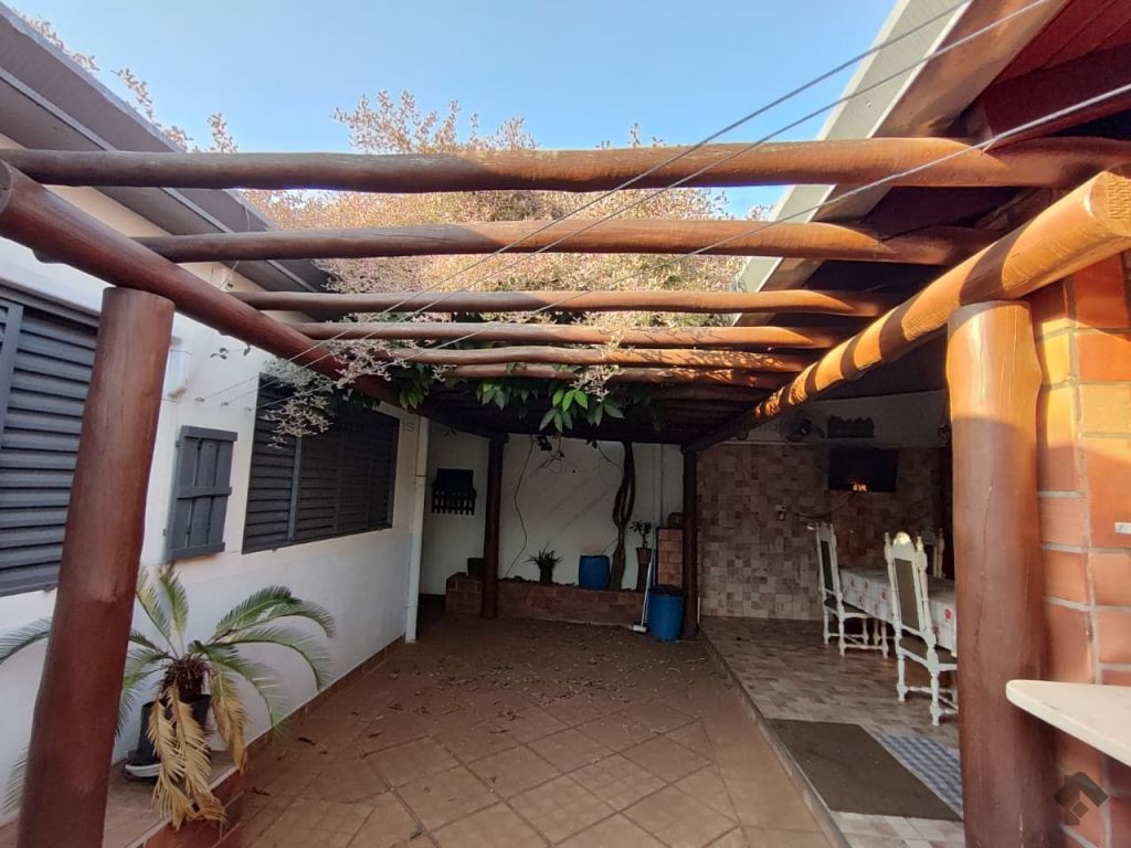 Cozinha separada da casa, juntamente com a área gourmet com churrasqueira nos fundos, contendo uma despensa, lavanderia, quarto, banheiro e pergolado florido.