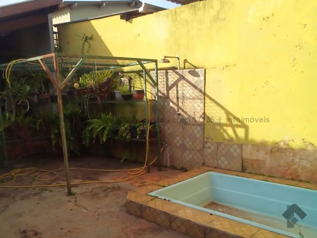 Residência com suíte, quarto de visita, área de lazer com piscina infantil, local para despensa com banheiro, sendo três banheiros na residência.