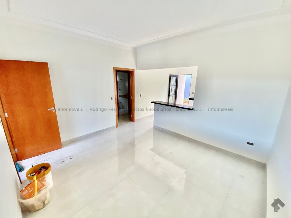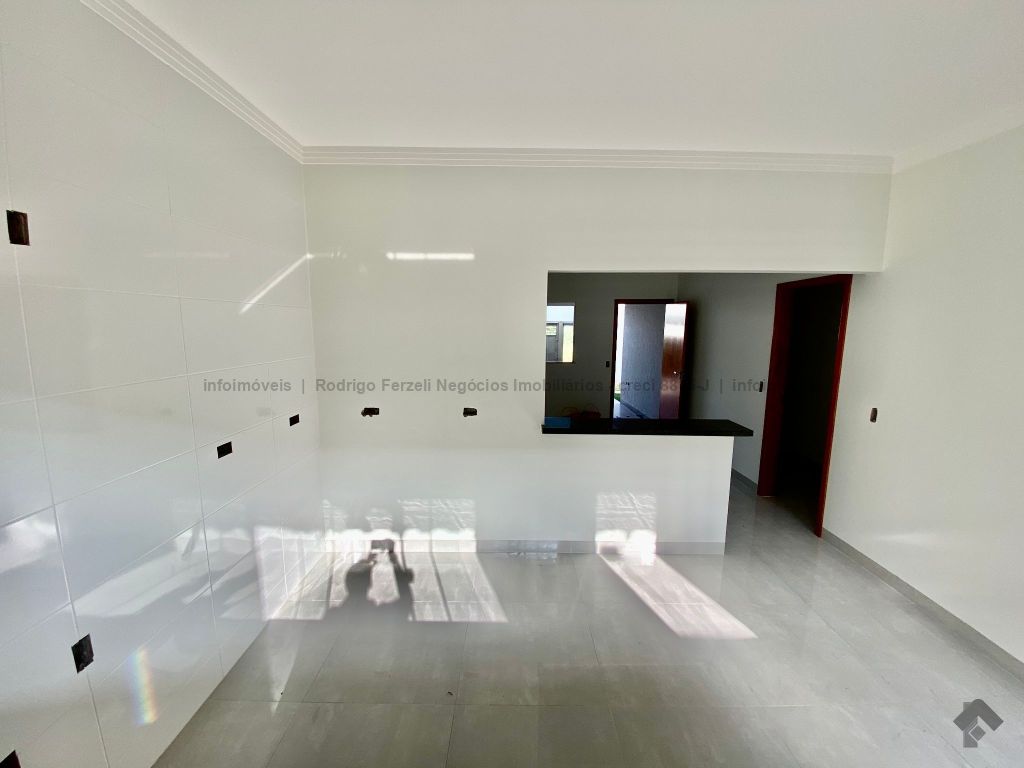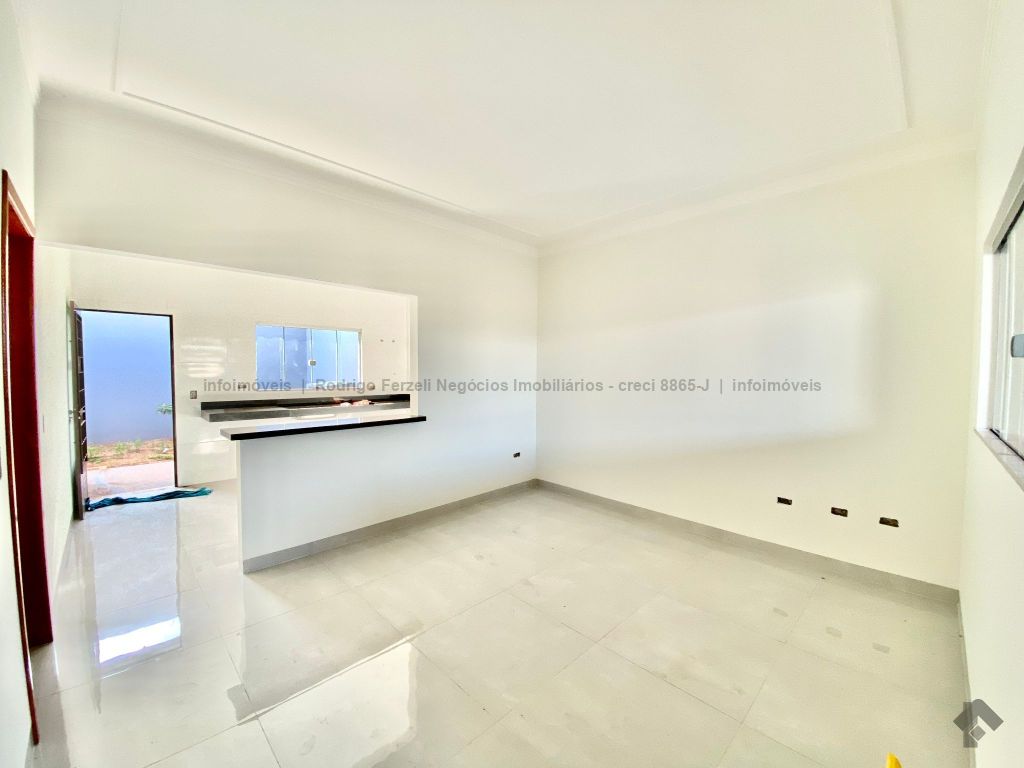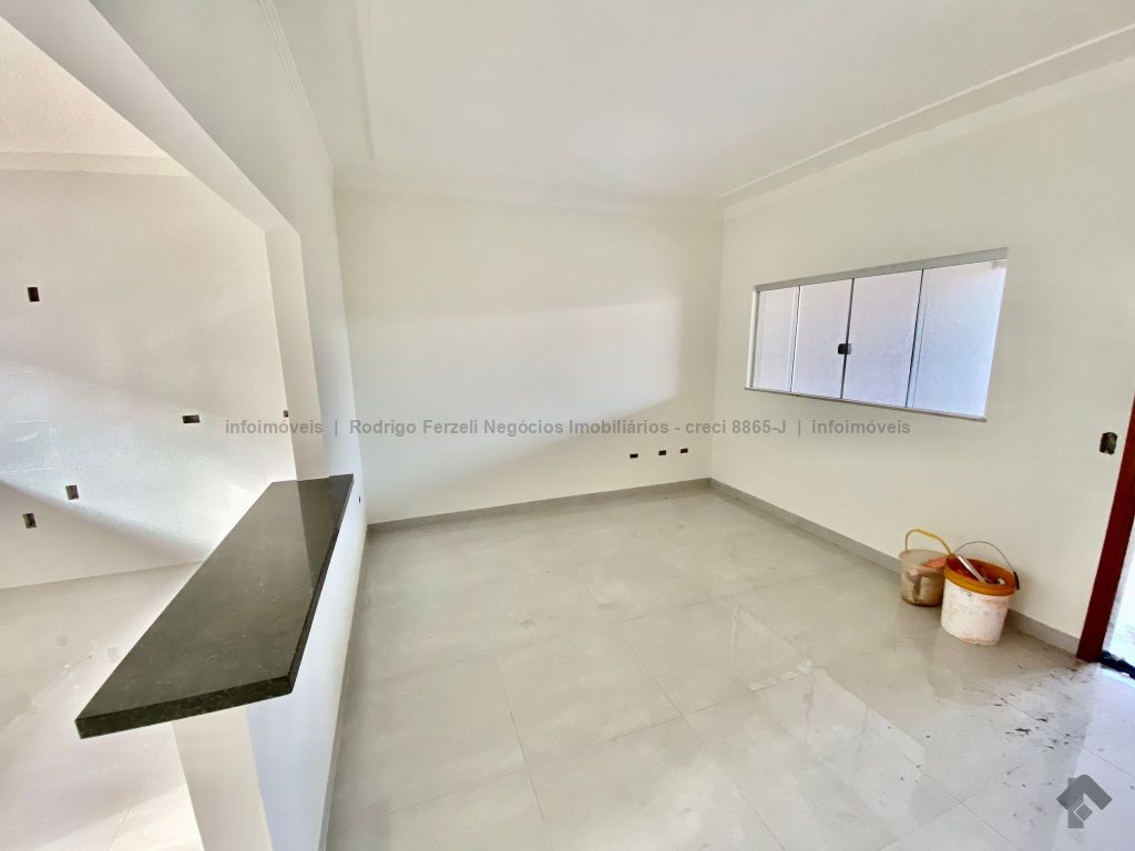 Ampla sala ao lado da cozinha americana, 01 suíte grande e 02 quartos, wc social, garagem coberta para 02 carros, espaço de terreno na frente e no fundo. Com preparação para receber água quente, gás encanado, muros altos, cerca elétrica e concertina.