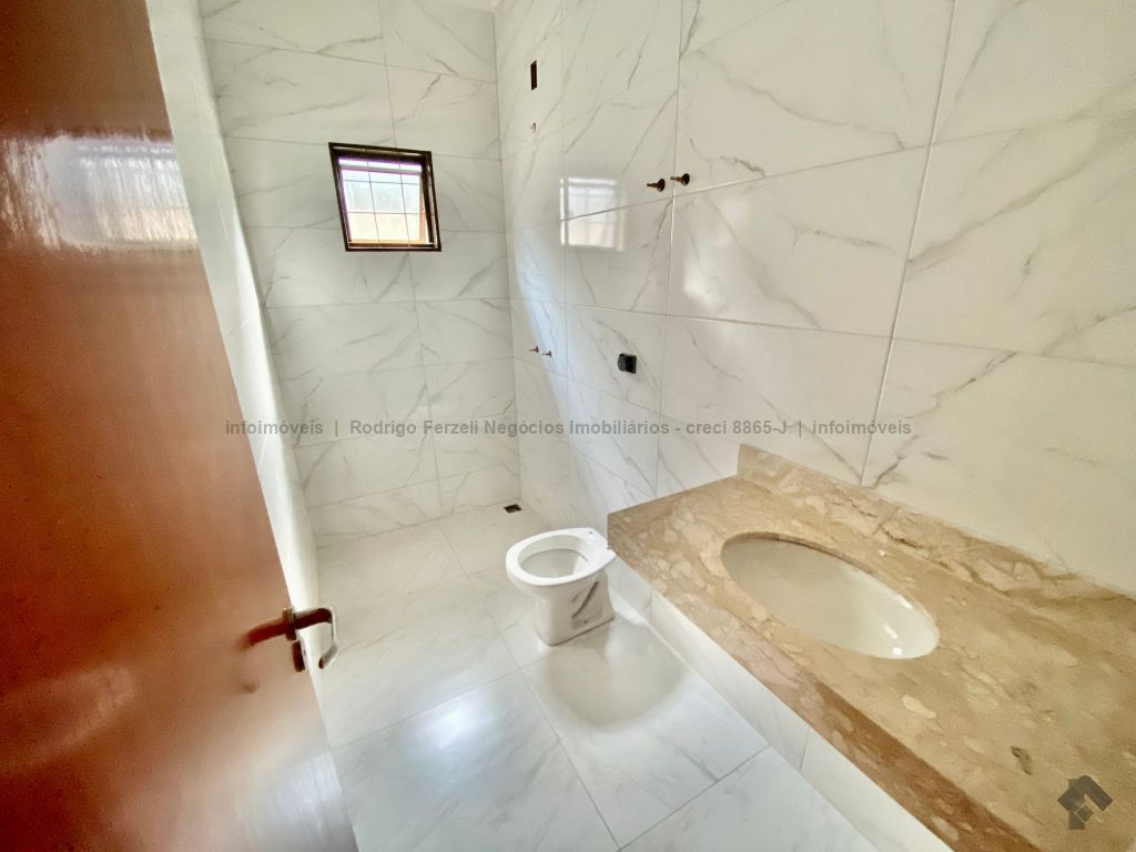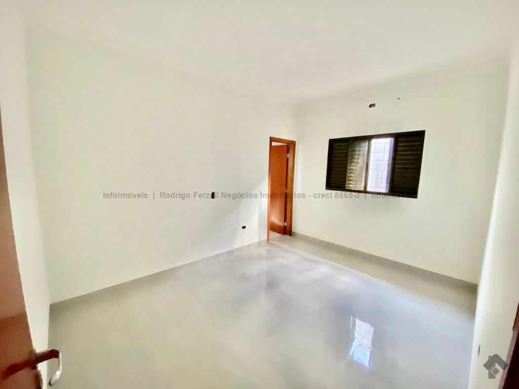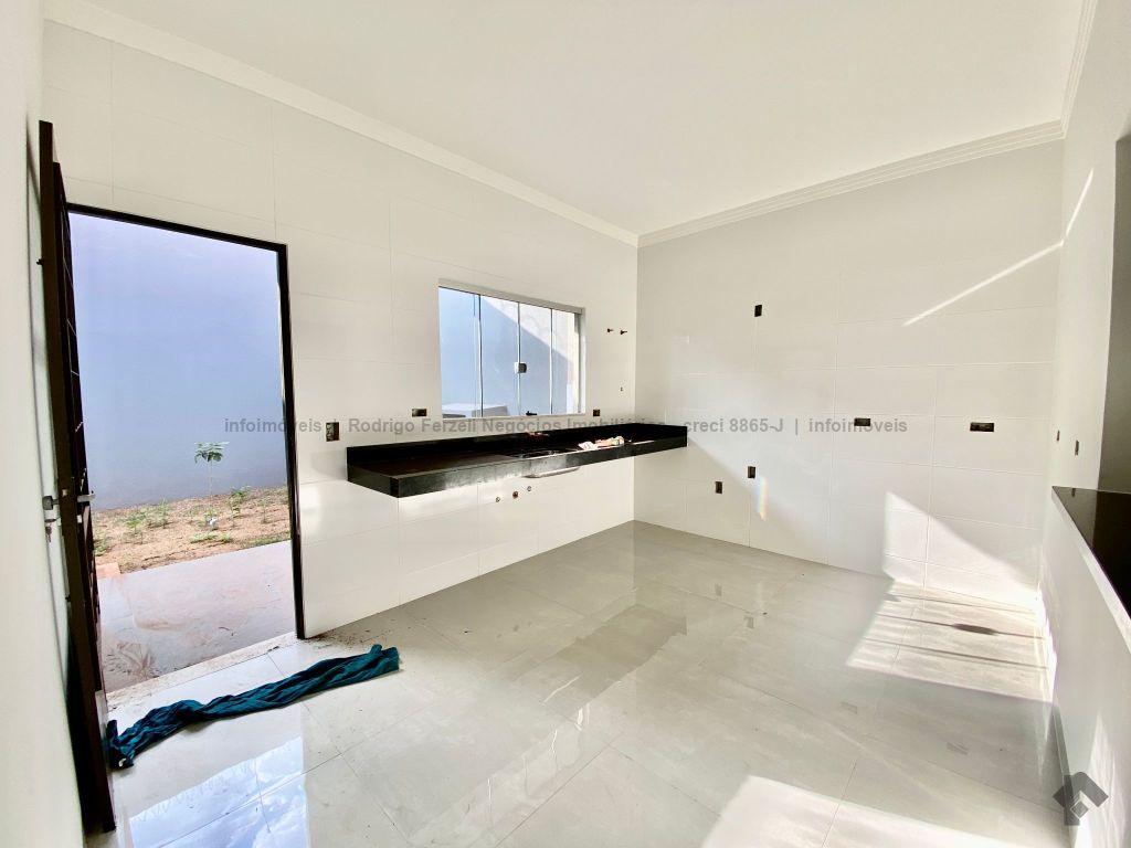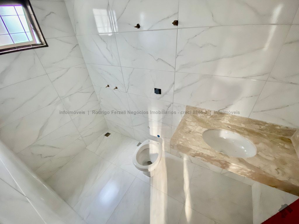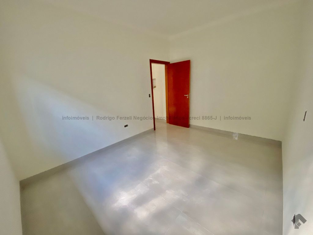 Ampla sala ao lado da cozinha americana, 01 suíte grande e 02 quartos, wc social, garagem coberta para 02 carros, espaço de terreno na frente e no fundo. Com preparação para receber água quente, gás encanado, muros altos, cerca elétrica e concertina.