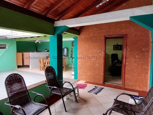 Casa com 3 quartos sendo 2 suítes todos os quartos contém armários planejados, sala ampla com 2 ambientes, cozinha individualizada com pia em mármore e armários planejados, 2 banheiros sociais, piscina, garagem coberta para 3 carros, área de serviço individualizada. Placas de energia solar com paisagismo.