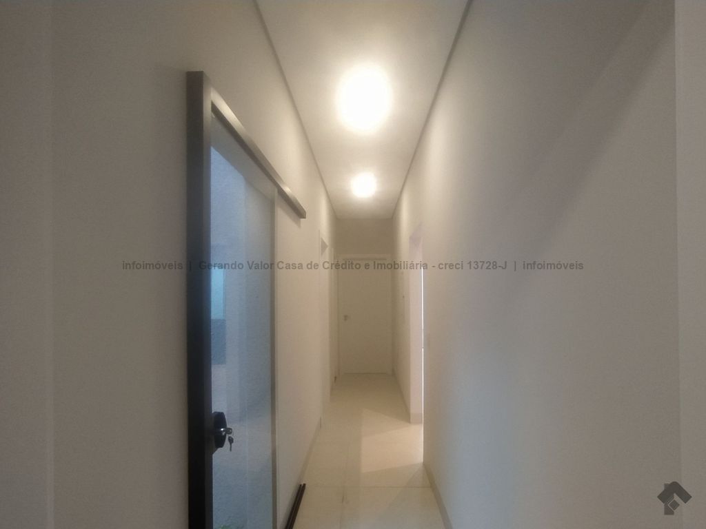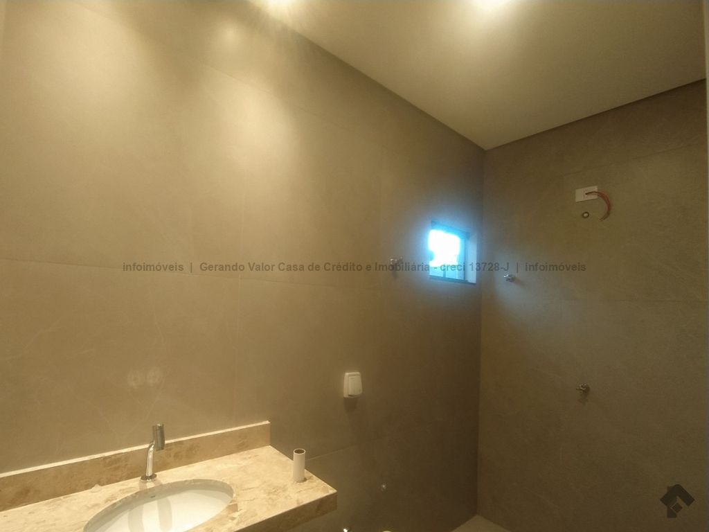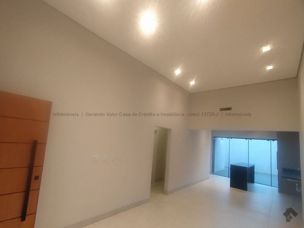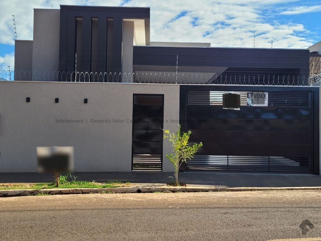 Casa de alto padrão contendo sala com pé direito alto, cozinha gourmet com bancada em mármore preto, três quartos, sendo uma suíte, um banheiro social, um lavabo, lavanderia coberta. Calçadas revestidas em fulget, portão de elevação grande com motor, concertina, cerca elétrica, porcelanato, pergolado, iluminação em LED, garagem para dois carros, sendo uma vaga coberta.