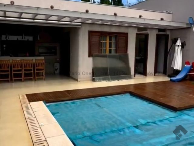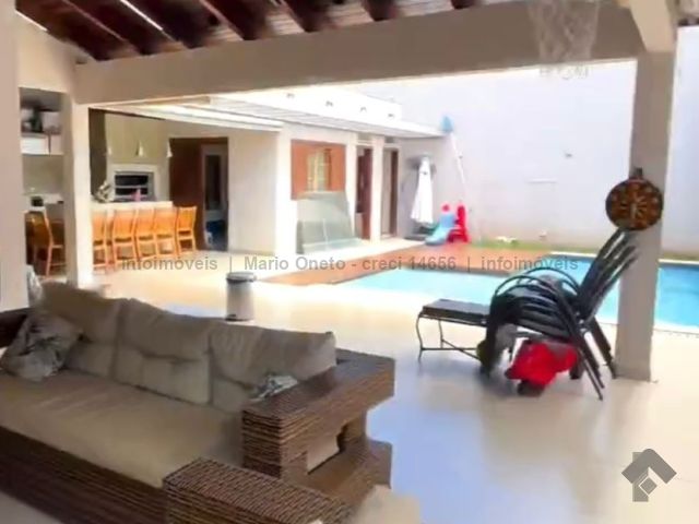 1 suíte master com closet, 2 suítes, 1 mezanino sendo escritório e quarto, 1 suíte externa, lavabo, 1 sala de estar, 1 sala de jantar, 1 sala de TV, lavanderia completa, piscina com aquecedor, área gourmet completa, banheiro externo, depósito externo, água quente nas 3 suítes e cozinhas (boiler).
