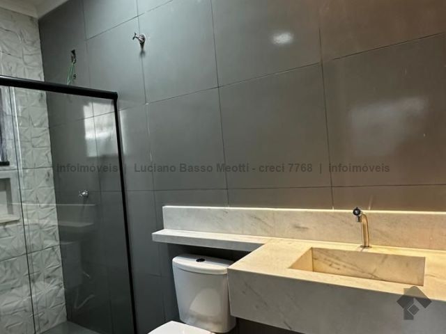 Sala de estar, sala de jantar, cozinha americana, um banheiro social, lavanderia, um quarto e uma suíte. Casa térrea com excelente acabamento de alto padrão, cerca elétrica e portão eletrônico.
