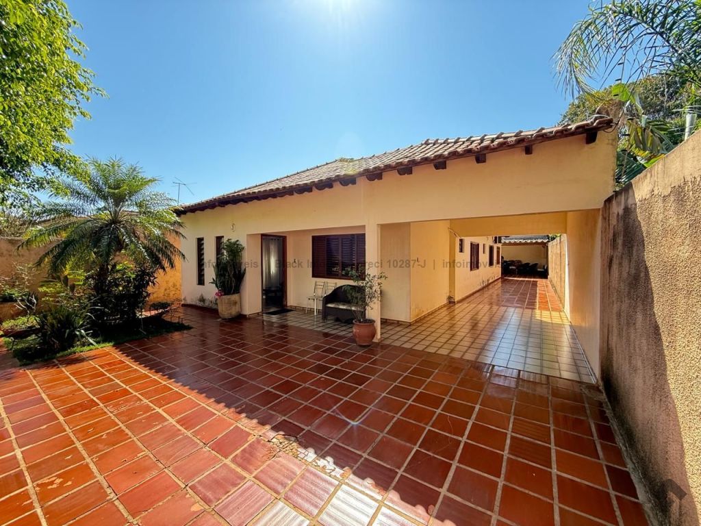 Ambientes internos: sala de estar ampla, sala de jantar, sala de TV, cozinha com armários planejados, banheiro social, 3 quartos espaçosos, suíte, área de serviço. Ambientes externos: área gourmet, despensa espaçosa, fogão a lenha, churrasqueira, banheiro social externo, garagem para 4 carros (2 cobertas).