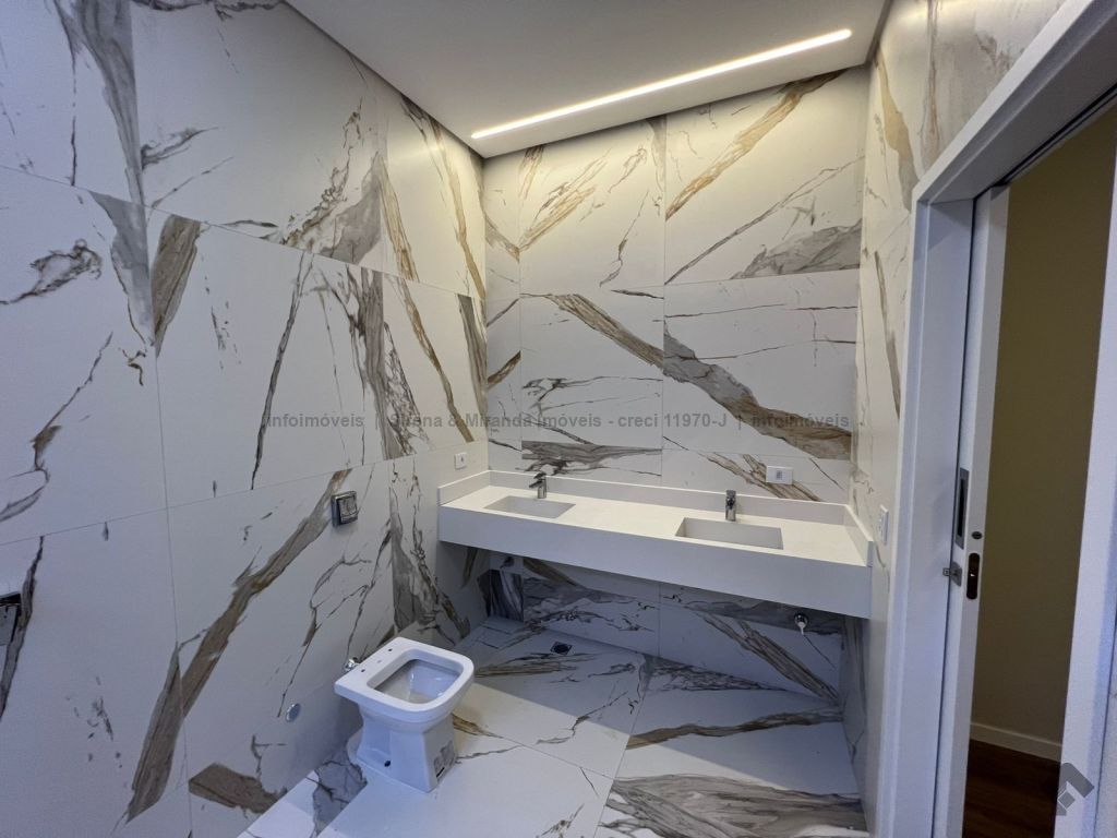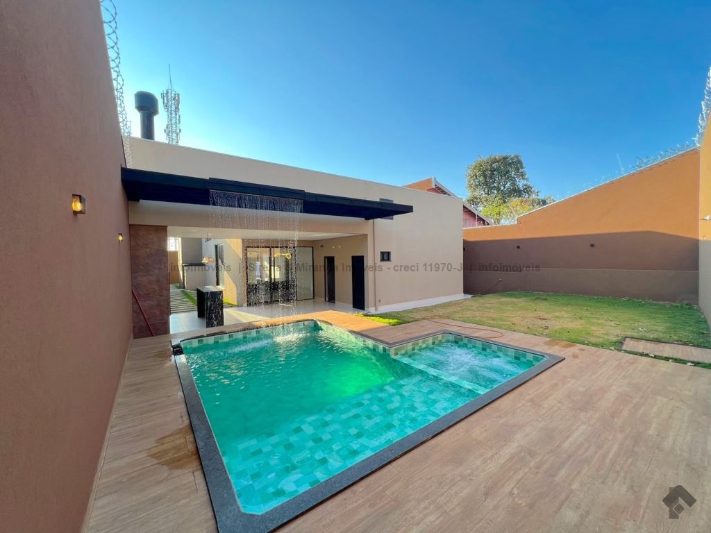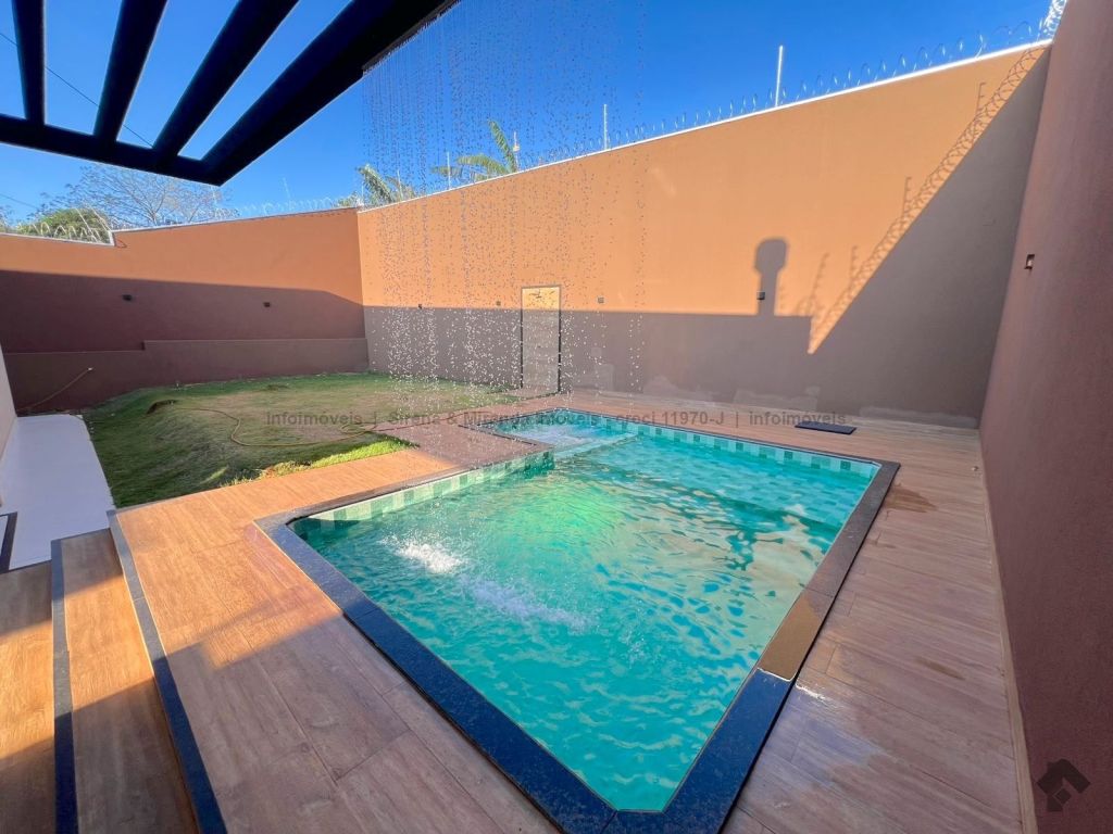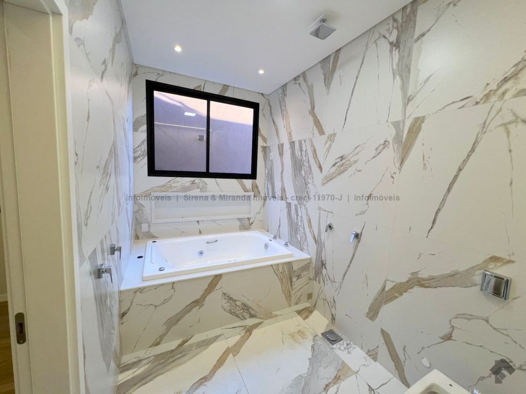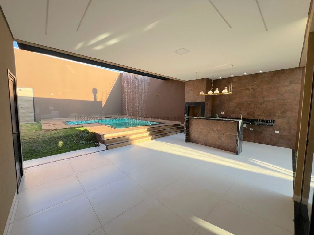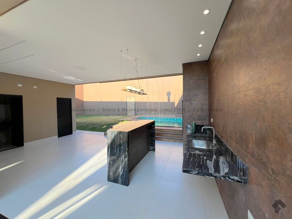Duas suítes amplas e uma suíte master com banheira de hidromassagem e chuveiro duplo, sala de estar integrada à cozinha, escritório, lavabo, banheiro social, lavanderia coberta, área gourmet, piscina com cascata, hidromassagem, iluminação em LED, tomadas inteligentes nas áreas sociais, portas internas em Pormade, janelas e portas externas em esquadria de alumínio na cor preta, portão de elevação automatizado, portão social independente, fechadura eletrônica de acesso, sistema de segurança com preparação para câmeras de monitoramento, cerca elétrica com concertina, preparação para sistema de aquecimento de água com boiler de 400 litros, preparação hidráulica para piscina aquecida.