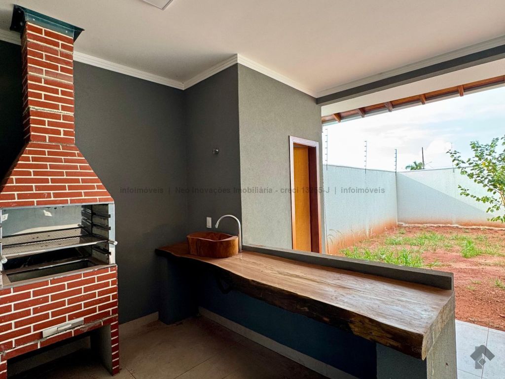 Linda casa com 140 m² construídos, contando com sala, cozinha, 3 suítes, banheiros com box, 2 lavabos, área de serviço coberta, varanda gourmet com churrasqueira e bancada em madeira maciça, quintal e garagem para 1 carro.