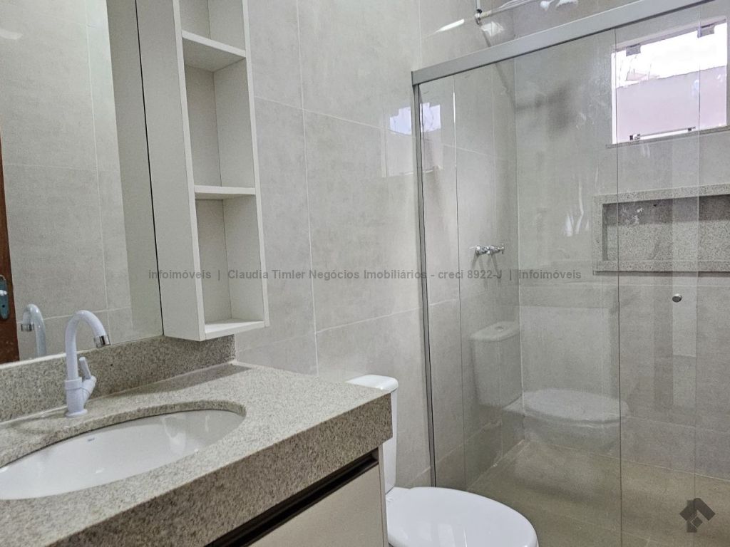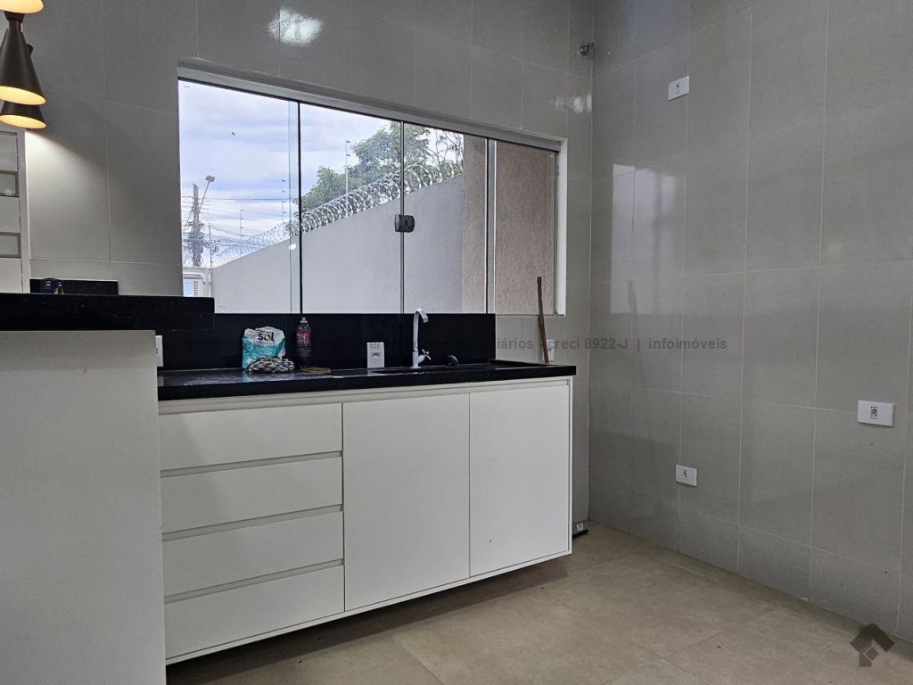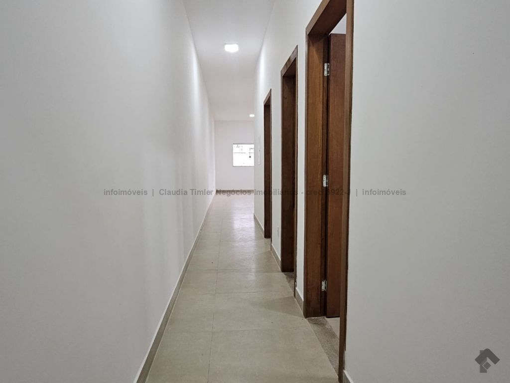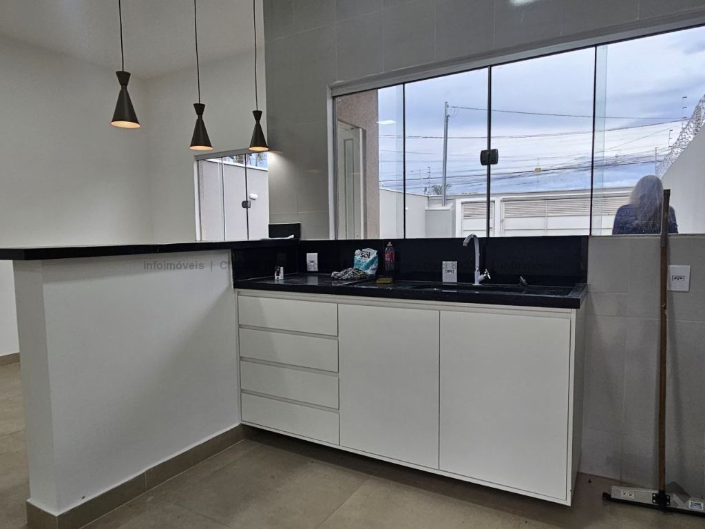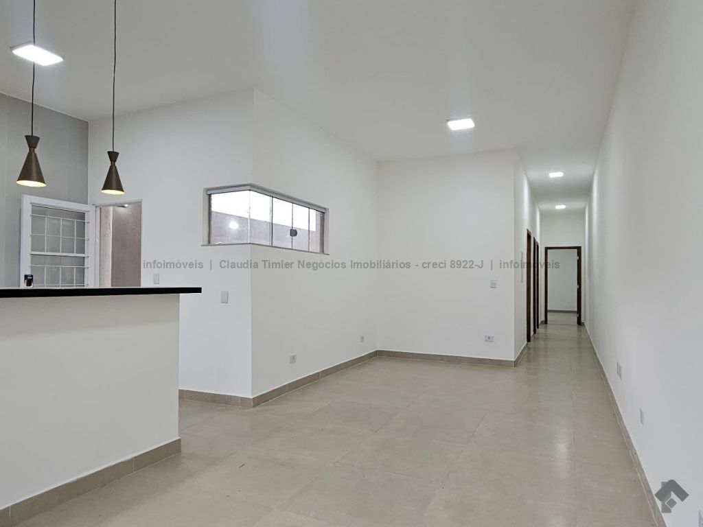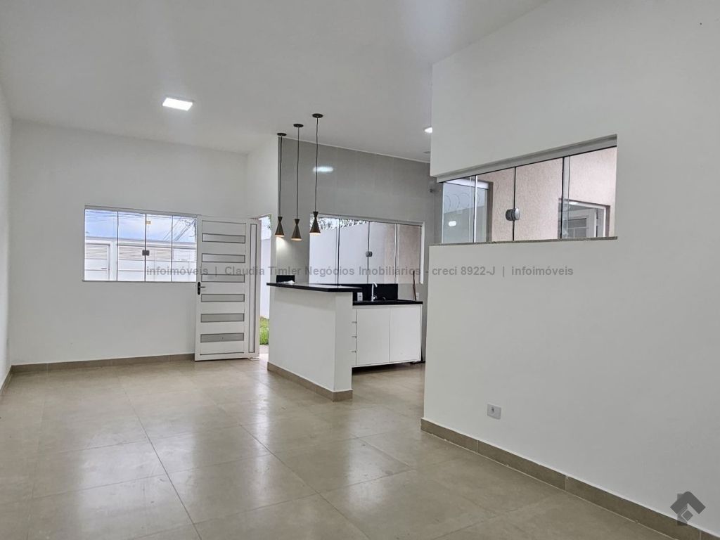 Casa em ótima localização, garagem para dois carros, sala com cozinha integrada, armários na cozinha e banheiros, banheiro social, área de serviço coberta, uma suíte e dois quartos, piso em porcelanato e ótimo acabamento.
