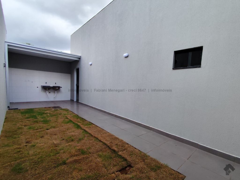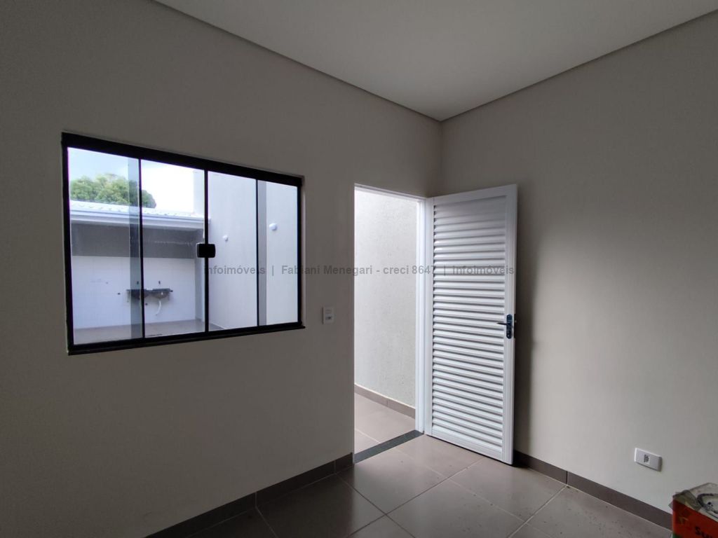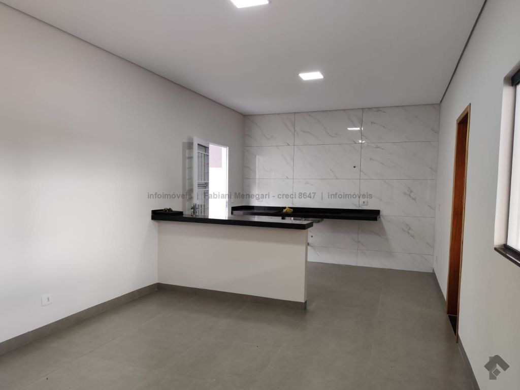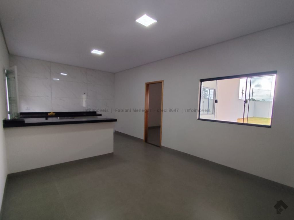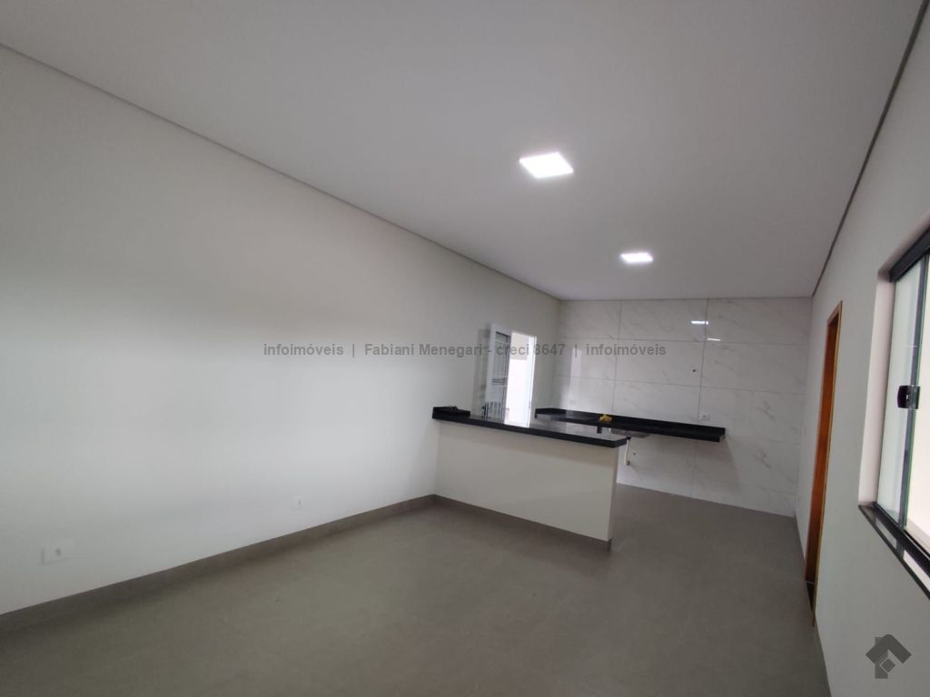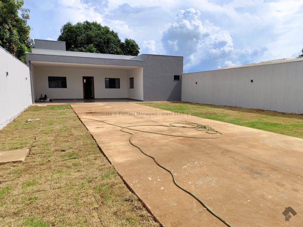 Casa com excelente acabamento no bairro Santa Felicidade Moreninhas, 1 suíte espaçosa com banheiro todo em porcelanato, pia com cuba moderna, sala e cozinha integradas em ambiente amplo e funcional, 1 quarto de solteiro, WC social. Varanda grande coberta na frente com espaço para 2 veículos cobertos e mais 4 ou mais descobertos. Lavanderia coberta, quarto externo nos fundos (despensa ou escritório). Casa toda em porcelanato e com rebaixamento em gesso. Localizada no fundo do terreno, com um gramado lindo na frente. Portão fechado, garantindo mais privacidade.