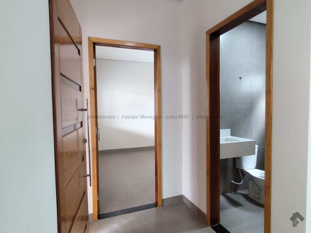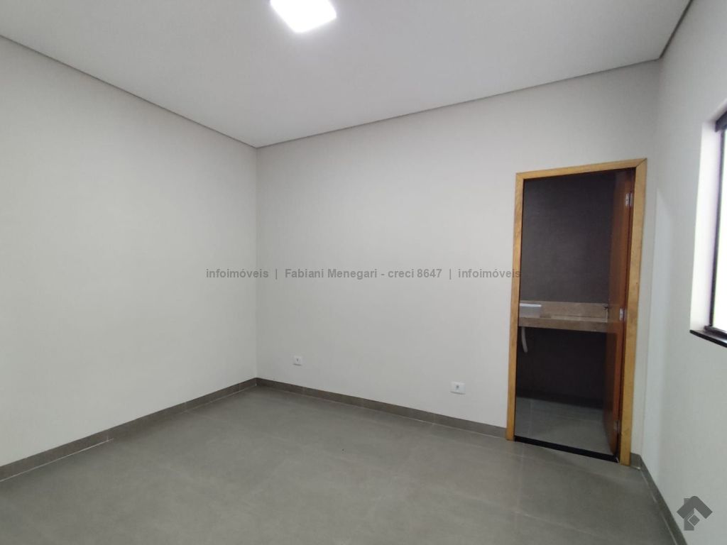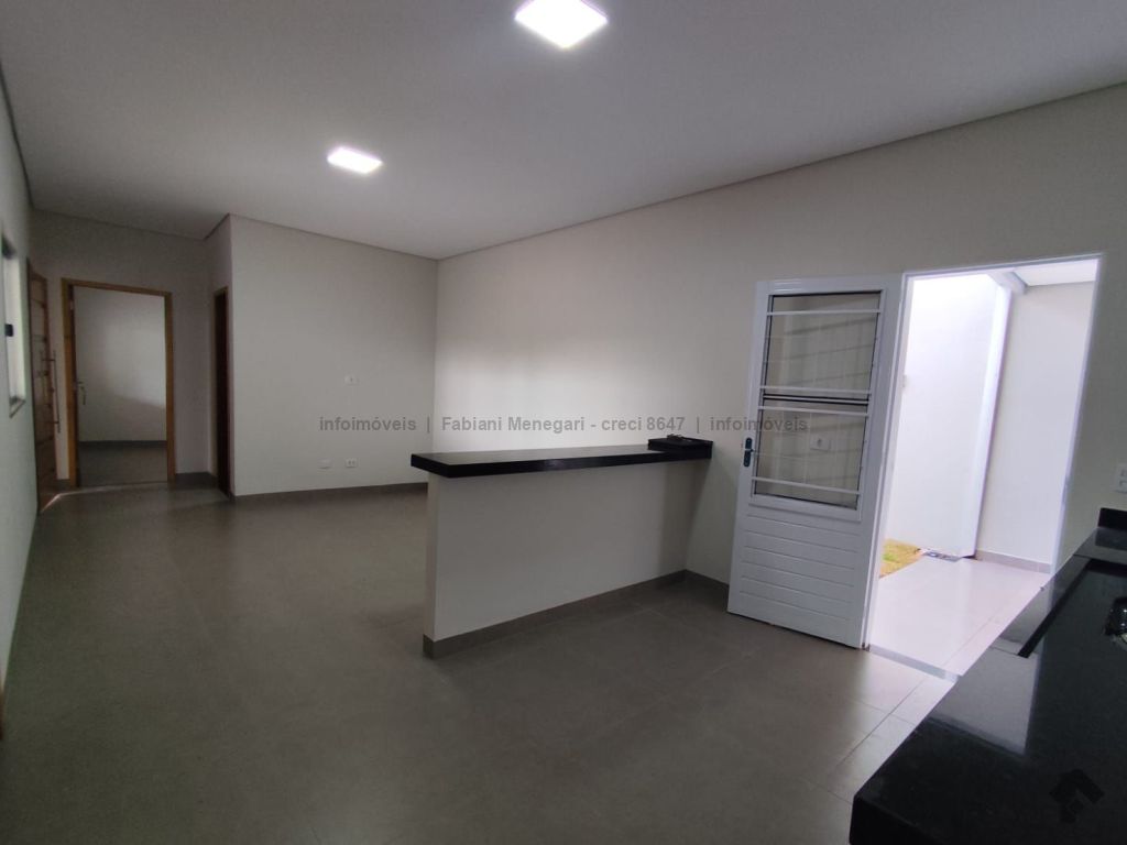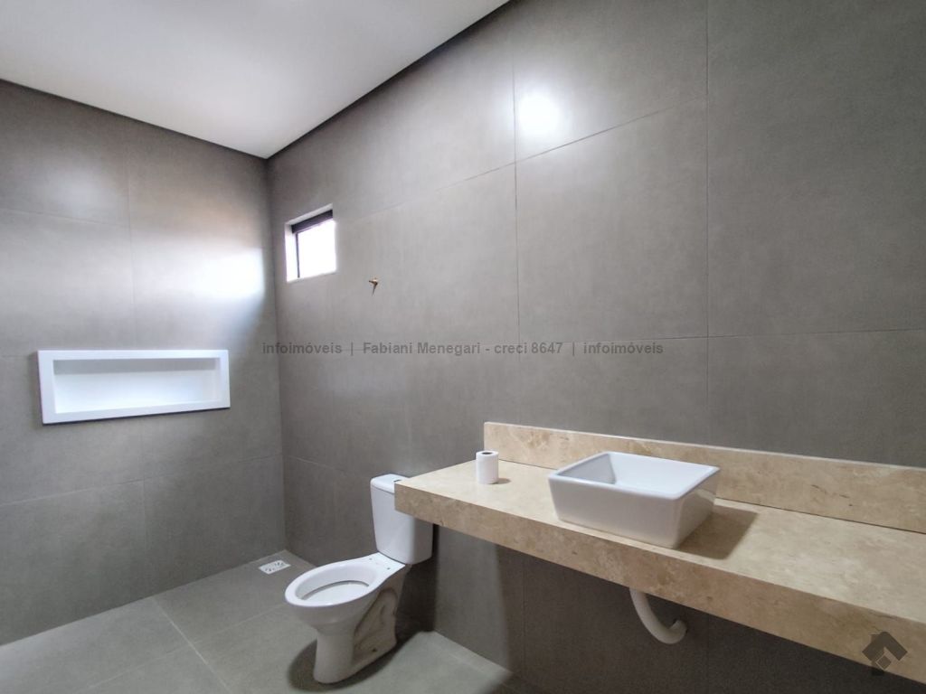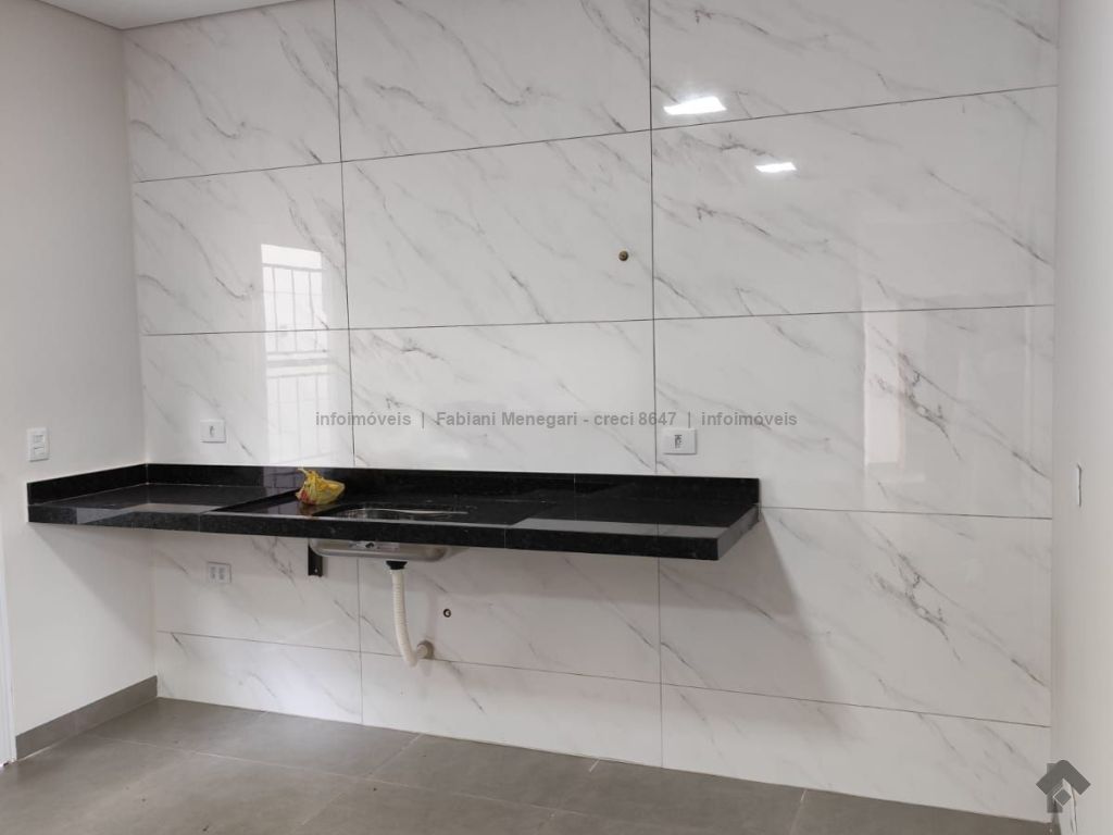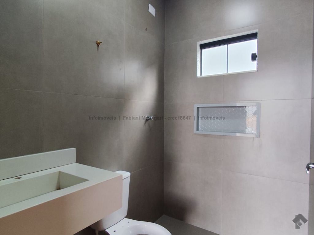 Casa com excelente acabamento no bairro Santa Felicidade Moreninhas, 1 suíte espaçosa com banheiro todo em porcelanato, pia com cuba moderna, sala e cozinha integradas em ambiente amplo e funcional, 1 quarto de solteiro, WC social. Varanda grande coberta na frente com espaço para 2 veículos cobertos e mais 4 ou mais descobertos. Lavanderia coberta, quarto externo nos fundos (despensa ou escritório). Casa toda em porcelanato e com rebaixamento em gesso. Localizada no fundo do terreno, com um gramado lindo na frente. Portão fechado, garantindo mais privacidade.