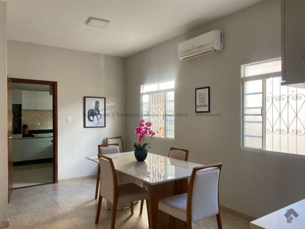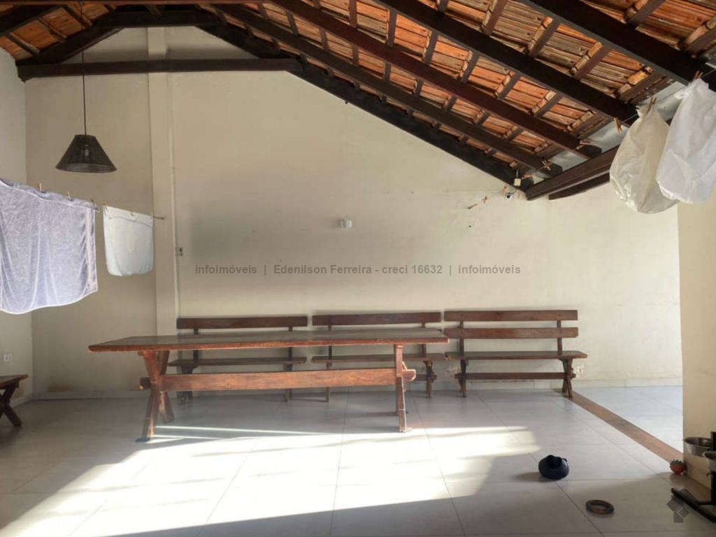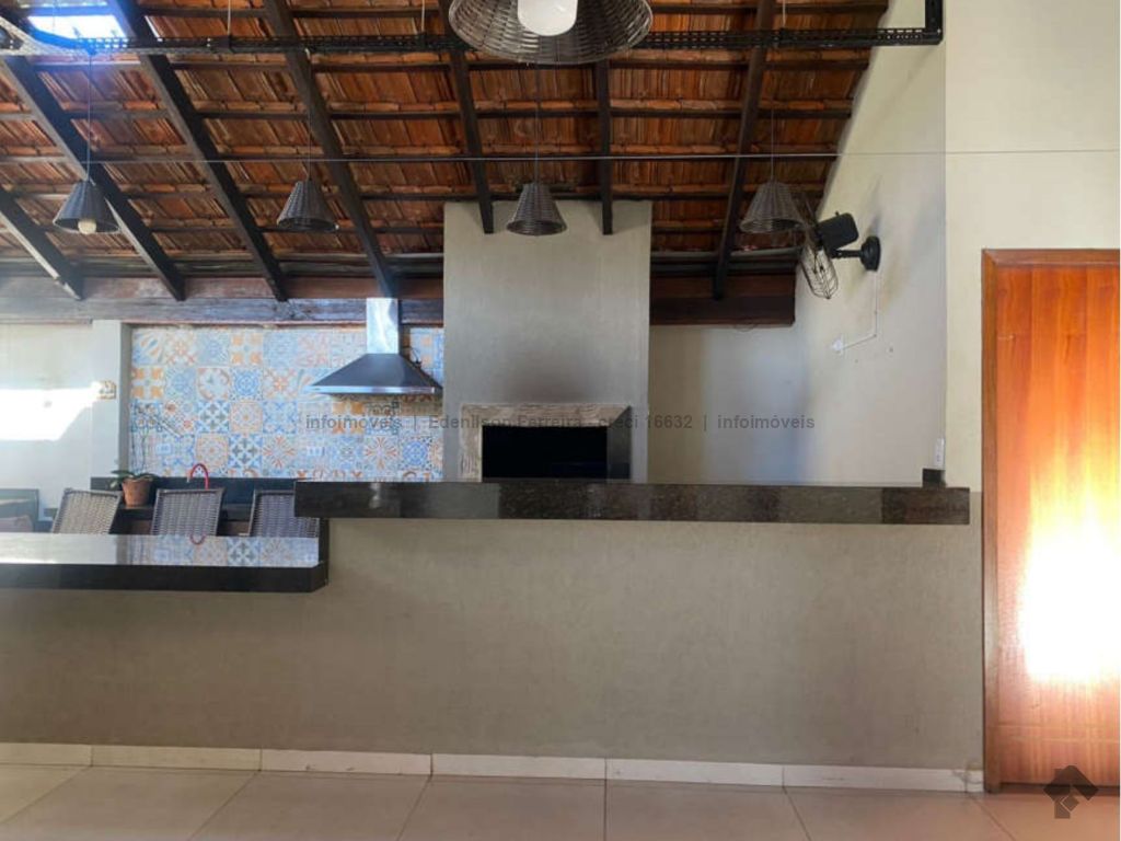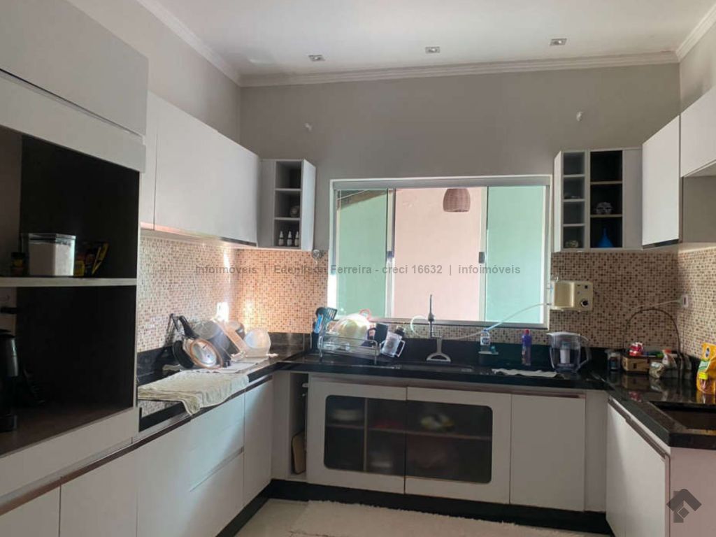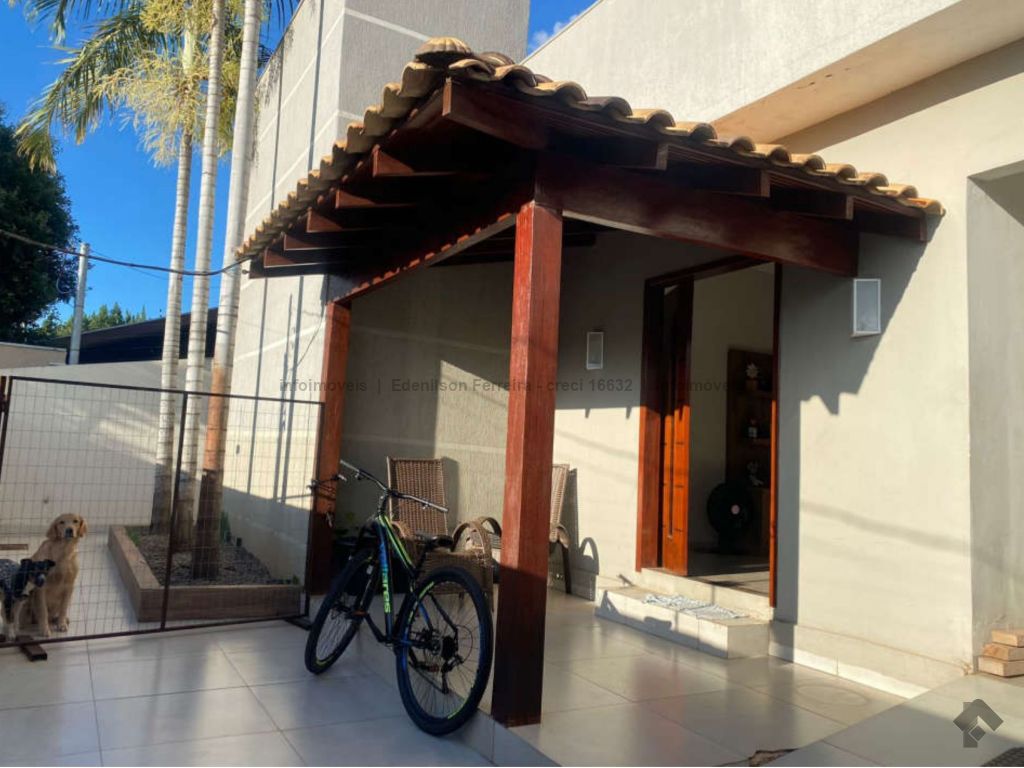 Casa com 2 suítes, 1 quarto, sala de jantar e sala de TV, cozinha interna, despensa, 1 banheiro externo, lavanderia, 1 quarto externo, área gourmet, garagem para 3 carros e corredor com canil.