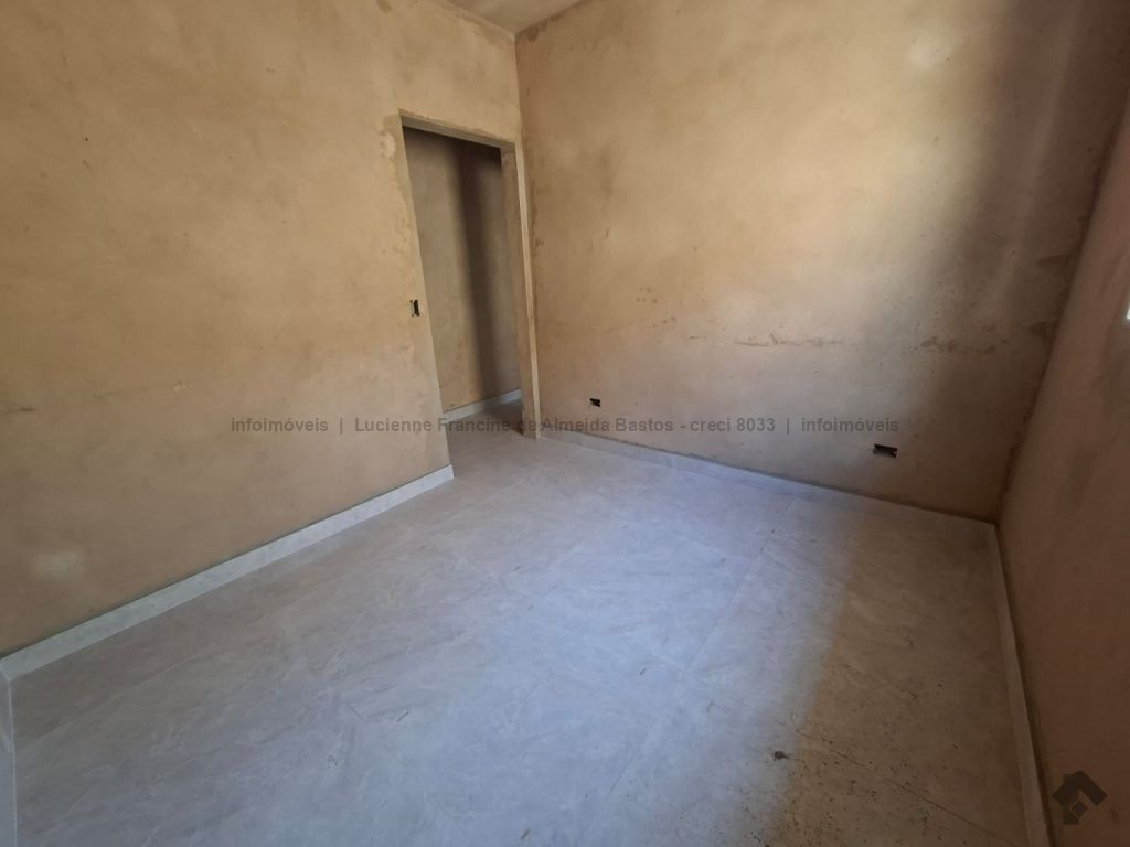 01 suíte, 01 quarto, garagem e quintal grande. Alto padrão de acabamento e projeto arquitetônico diferenciado. Ambientes aconchegantes e espaçosos. Espaço na frente para carro. Forro de gesso rebaixado e iluminação em LED. Todos os cômodos com iluminação natural e janelas grandes. Sala de estar com possibilidade de mesa de jantar. Cozinha espaçosa com saída para área de serviço. Suíte e quartos com espaço para cama e guarda-roupas. Possibilidade de área gourmet e espaço para piscina.