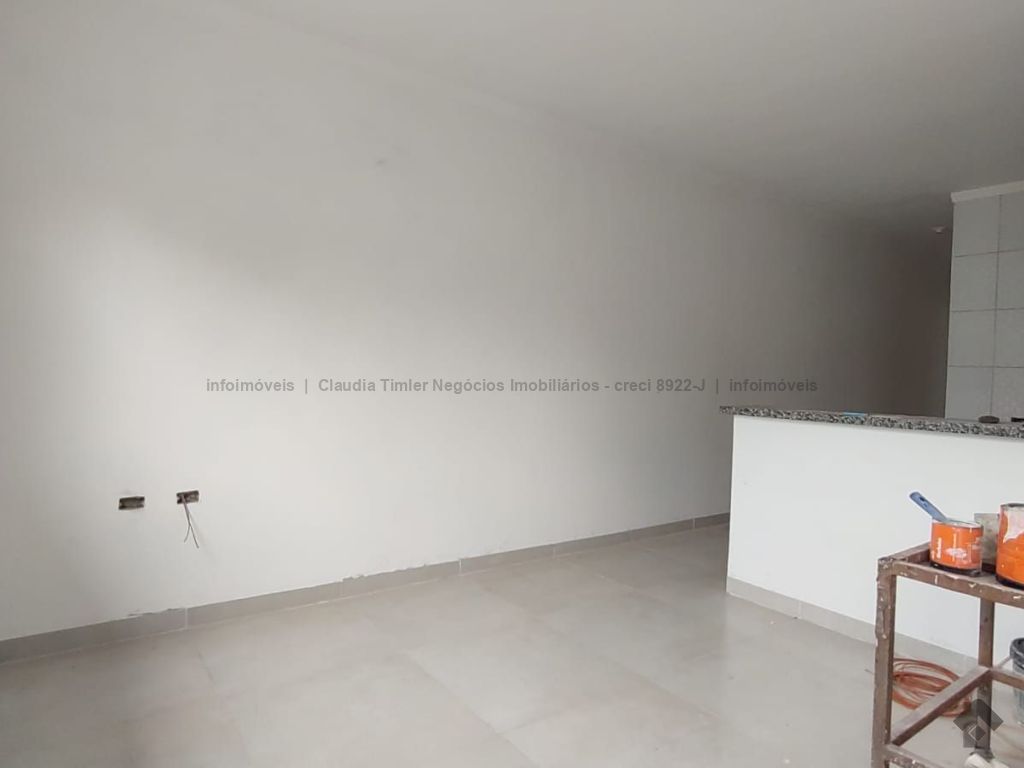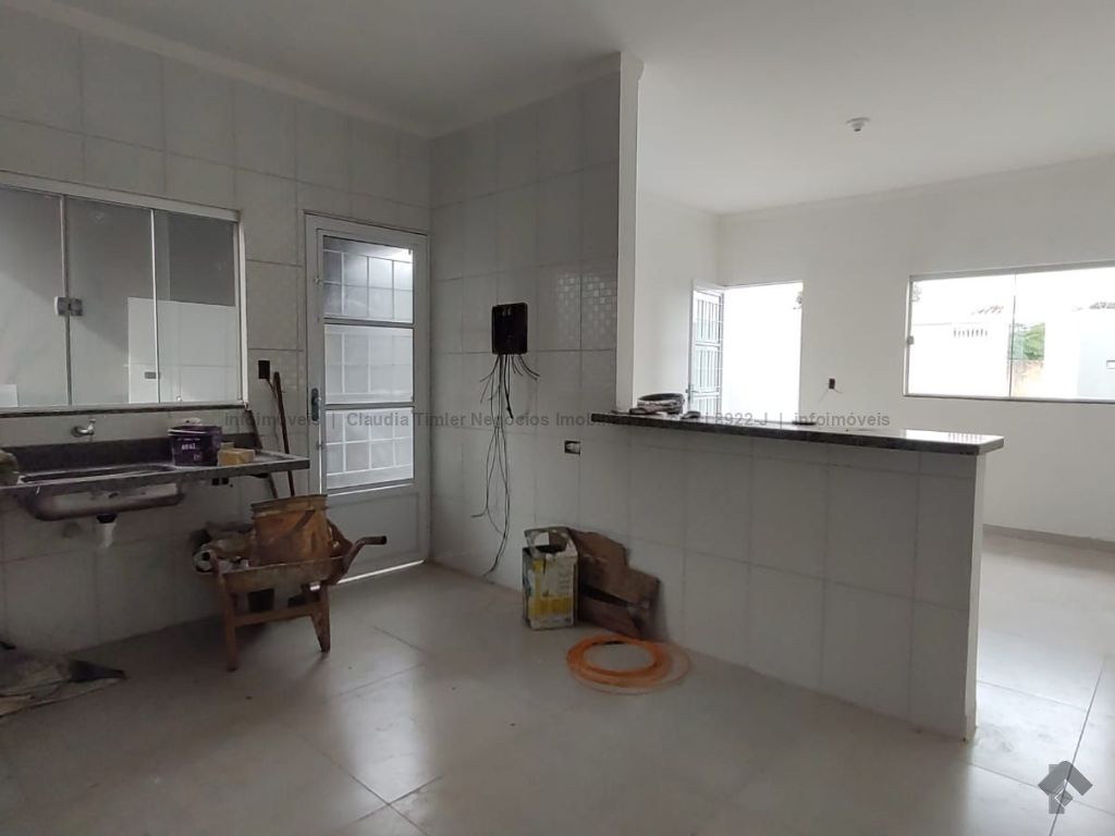 Sala com cozinha integrada. 1 suíte. 1 quarto. WC social. Area de serviço coberta. Espaço de terreno. Garagem para 2 carros. Rodapés embutidos. Nichos nos banheiros. Ótimo acabamento.