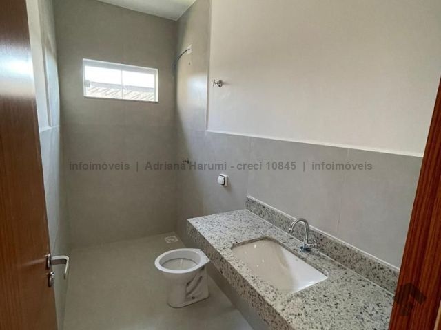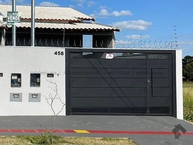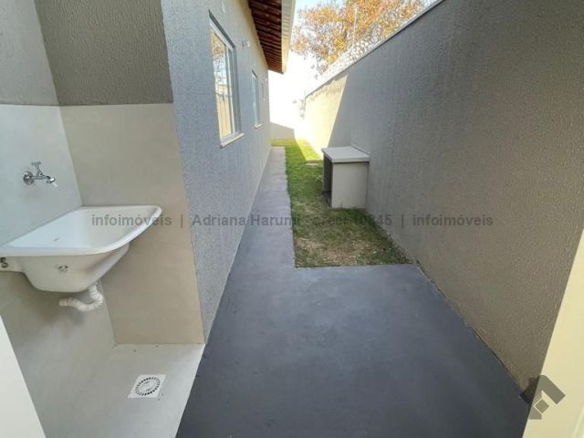 Casa com 3 quartos, sendo 1 suíte, sala, 1 banheiro social, cozinha, área de serviço coberta, garagem descoberta, corredor lateral e garagem.