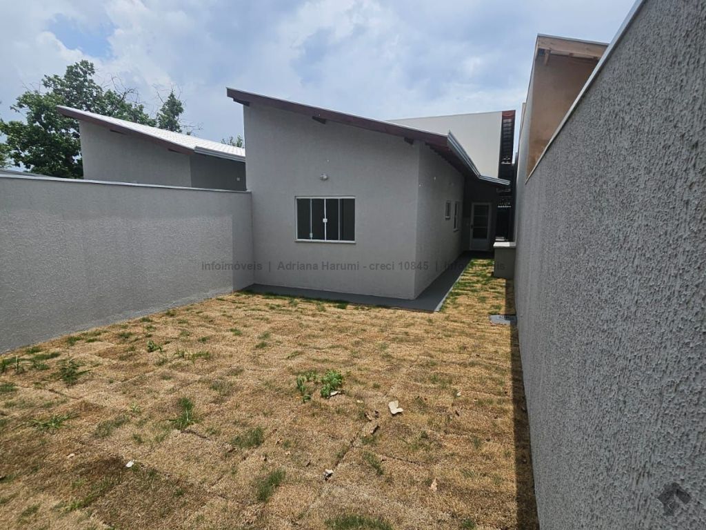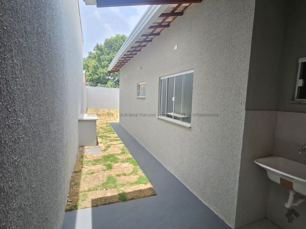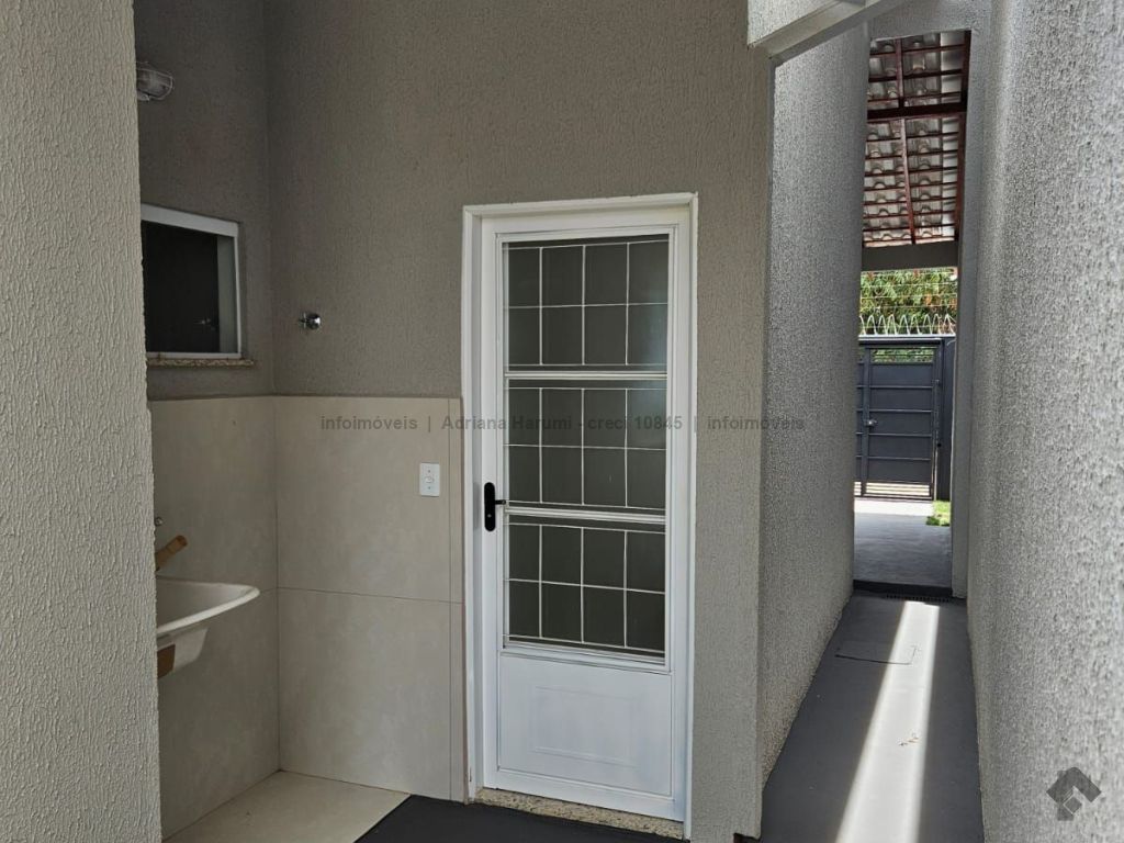 Casa com 02 quartos, sendo 01 suíte, banheiro social, sala, cozinha, área de serviço, corredor lateral e garagem coberta.
