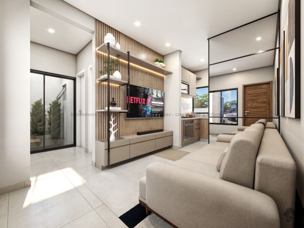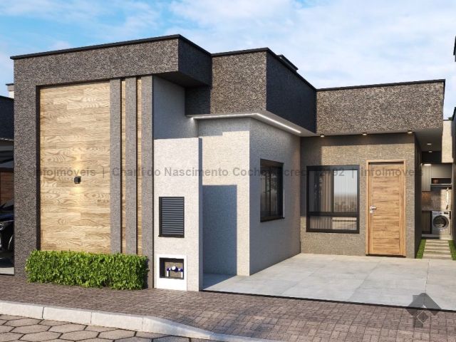 Casa moderna com excelente acabamento, possui uma suíte, um quarto, cozinha, sala de TV, box Blindex.