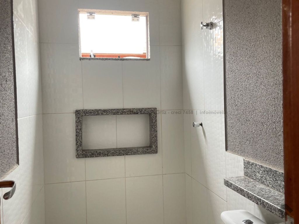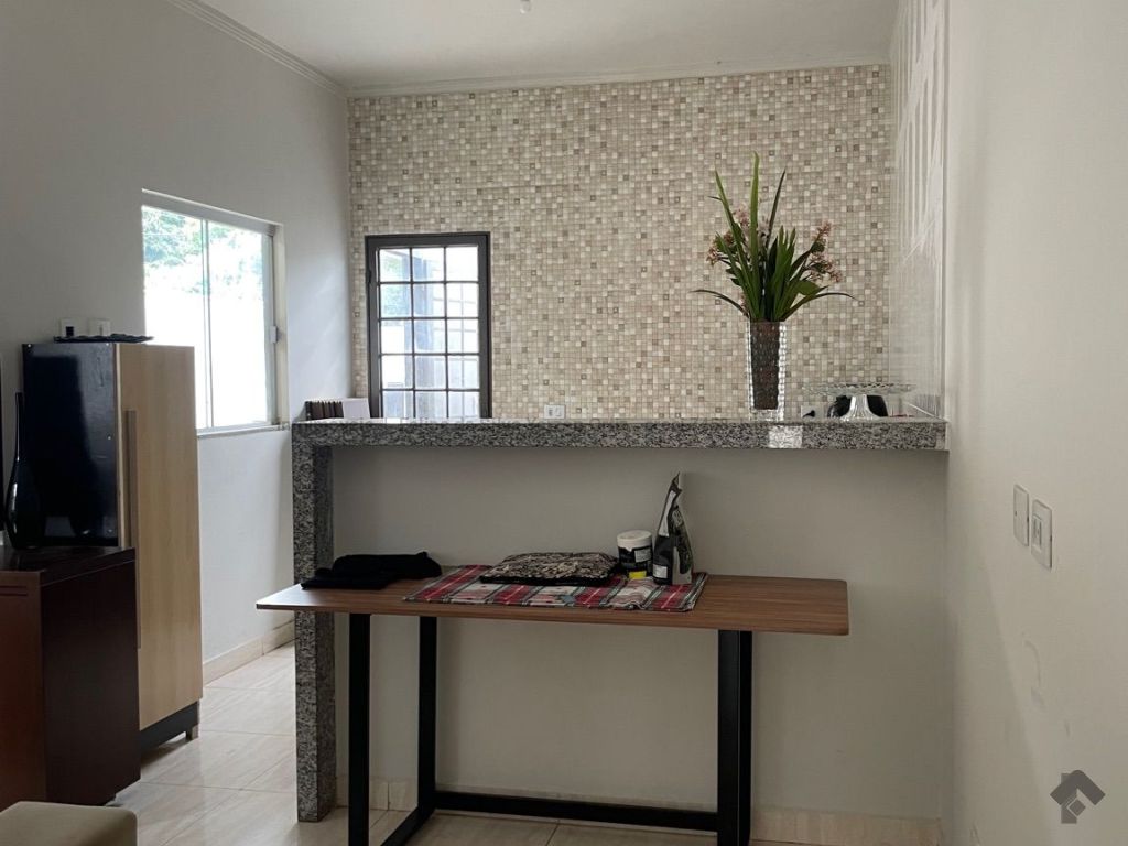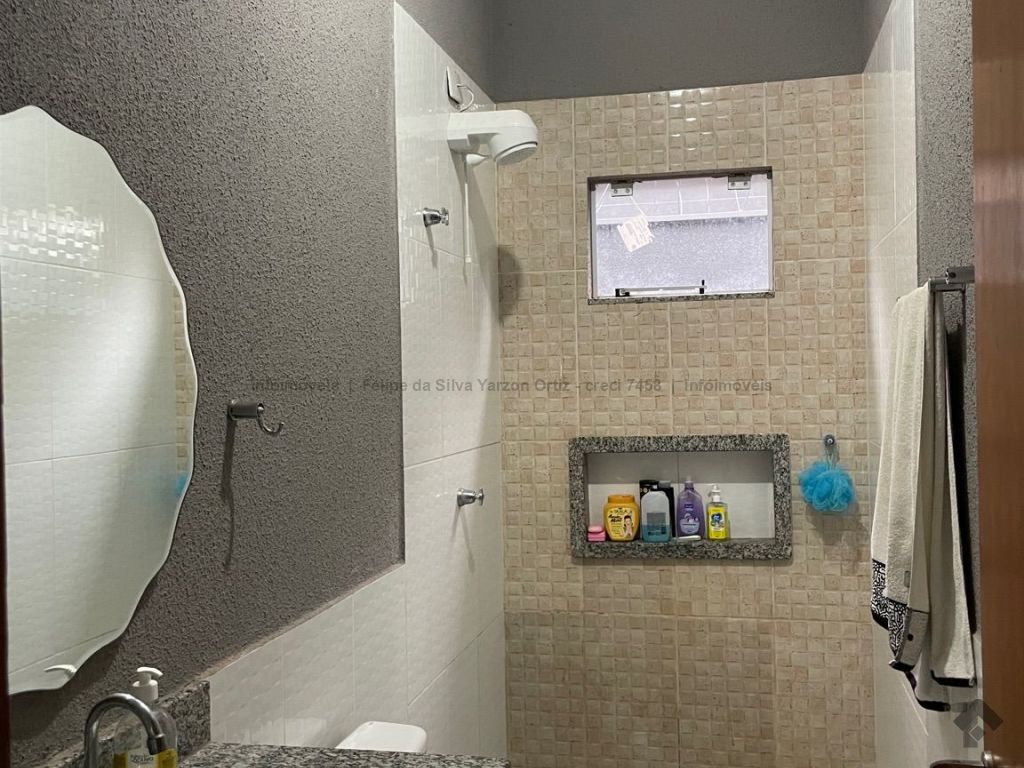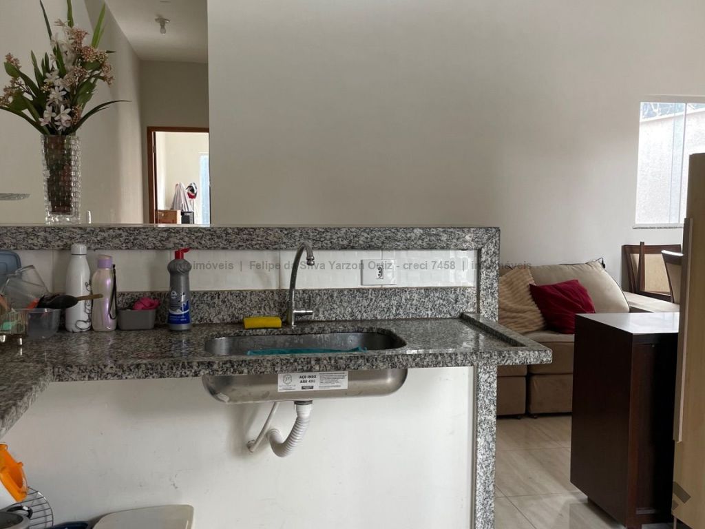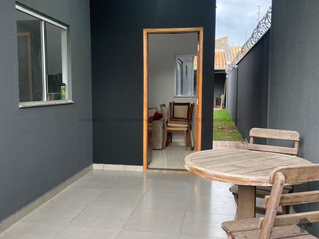 Casa moderna em rua bem localizada, toda em laje com estrutura para virar sobrado, sala com pé direito duplo, possui fachada moderna, 02 vagas de garagem, cozinha americana moderna, lavanderia, 01 banheiro, 02 quartos sendo uma suíte, um espaço amplo nos fundos com área coberta, um lavabo, quintal amplo, cerca elétrica e portão de elevação.