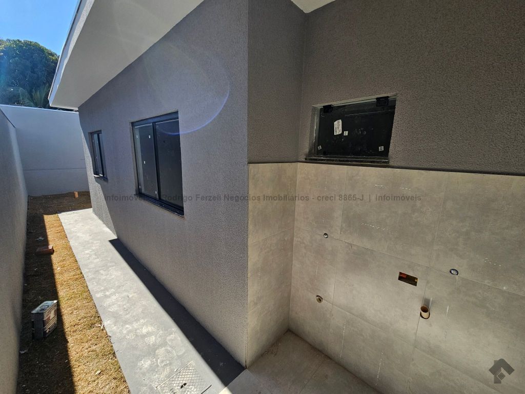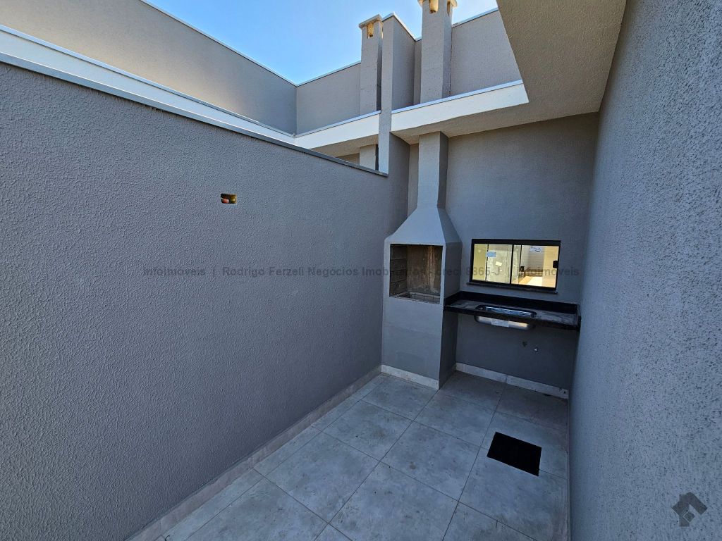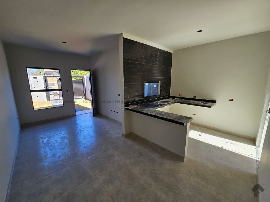 Linda casa com sala para 02 ambientes, cozinha americana, WC social todo azulejado, 01 quarto e 01 suíte, churrasqueira.